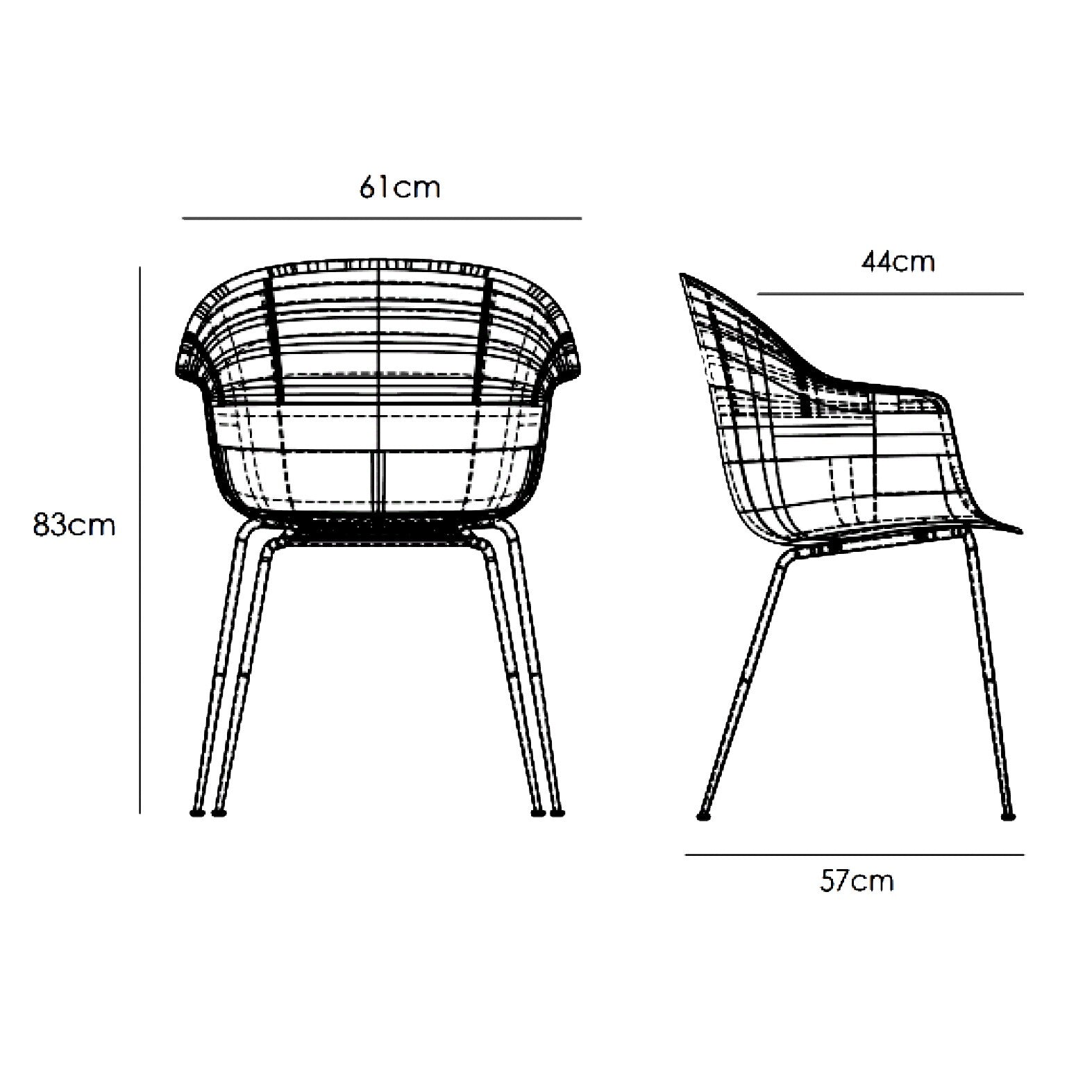 Die Schale besteht aus Polypropylen, einem leicht zu pflegenden Kunststoff, der in verschiedenen Farben erhältlich ist. Die filigranen Füße aus Stahl bilden einen interessanten Kontrast dazu. Der Bat Schalenstuhl mit konischer Messingbasis ist ein zeitloses Design, das sich in jedem Raum wohl fühlt. Mit seinen Maßen von 57 cm Breite, 61 cm Tiefe und 45 cm Sitzhöhe lässt er sich mit jedem beliebigen Tisch kombinieren. Die Höhe an der Seite beträgt 66 cm, und inklusive der Rückenlehne ist der Dining Chair 83 cm hoch. Mit einem Gewicht von 5,8 kg ist er leicht genug, um in jedem Raum zu platzieren.