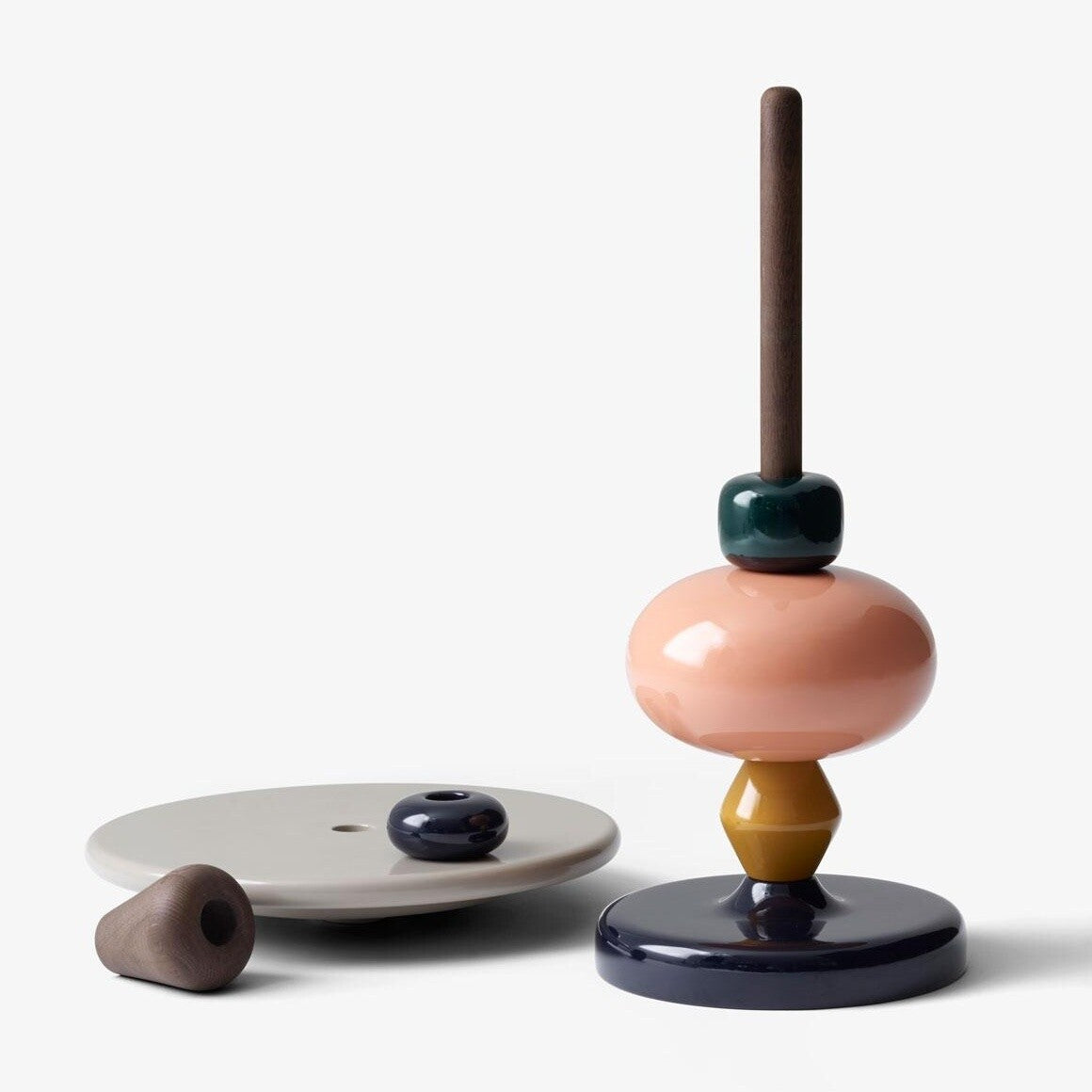 Der Clou an diesem Beistelltisch ist seine Flexibilität. Durch einfaches Aufschrauben des oberen Elements und Herausnehmen der einzelnen Holzteile kann der Verwender selbst bestimmen, wie die Formen, Farben und die Höhe des Tischchens ausfallen soll. Ein echtes Skandinavier- und Demokratie-Prinzip, das jedem Einzelnen ermöglicht, seinen eigenen Stil zu schaffen.