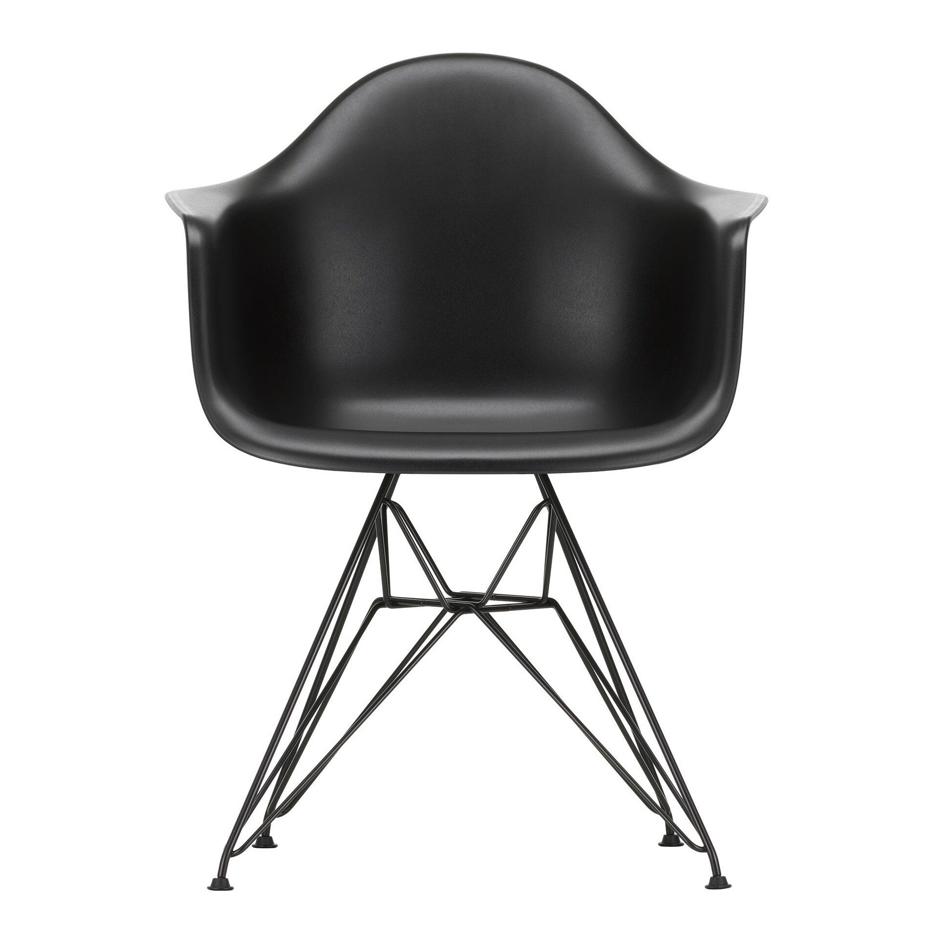 Ausführungen: Eames Plastic Armchair DAR RE Gestell schwarz / tiefschwarz/Sitzschale recycelter Post Consumer Kunststoff/Eiffelturmgestell pulverbeschichtet basic dark/ Filzgleiter schwarz/BxHxT 62,5x83x60cm