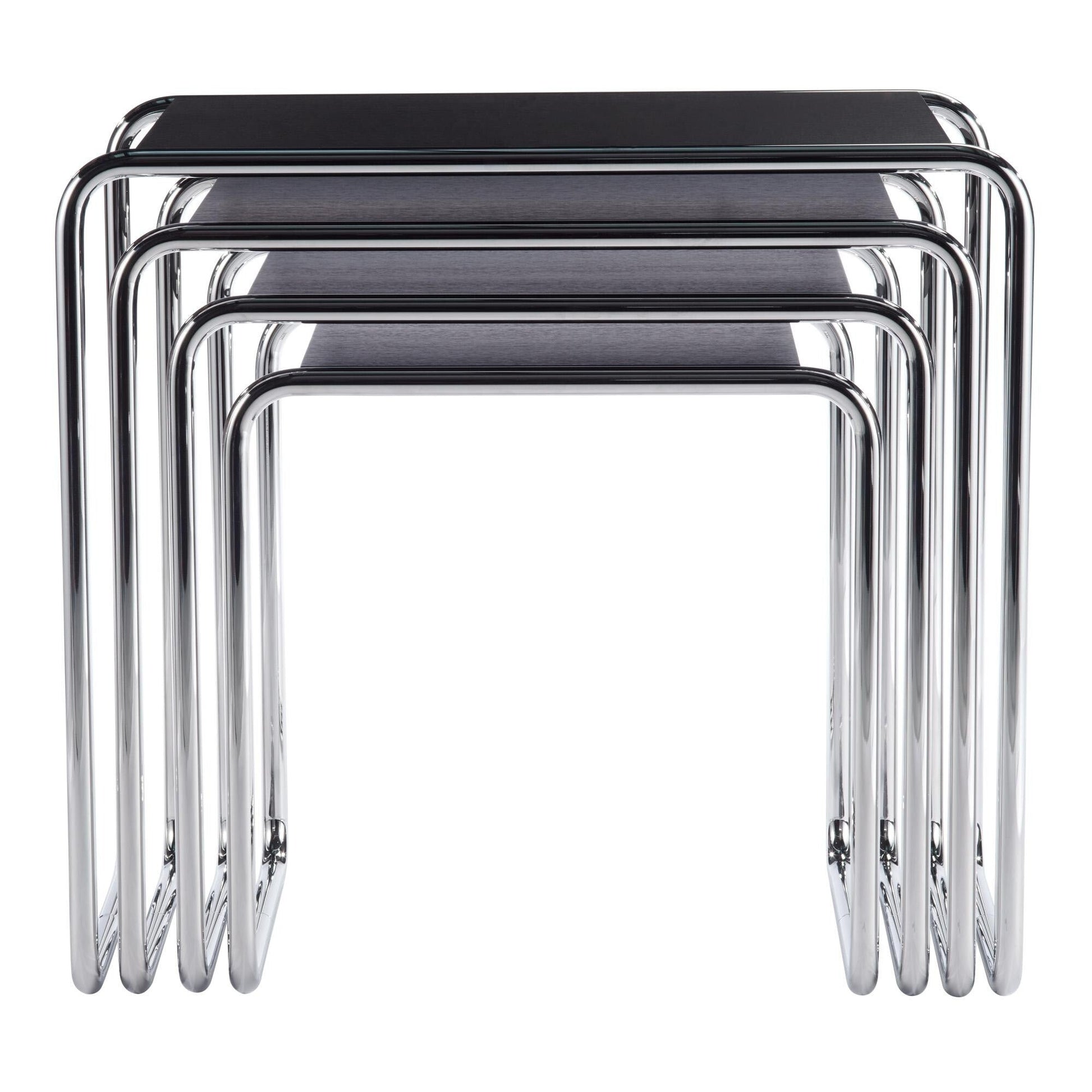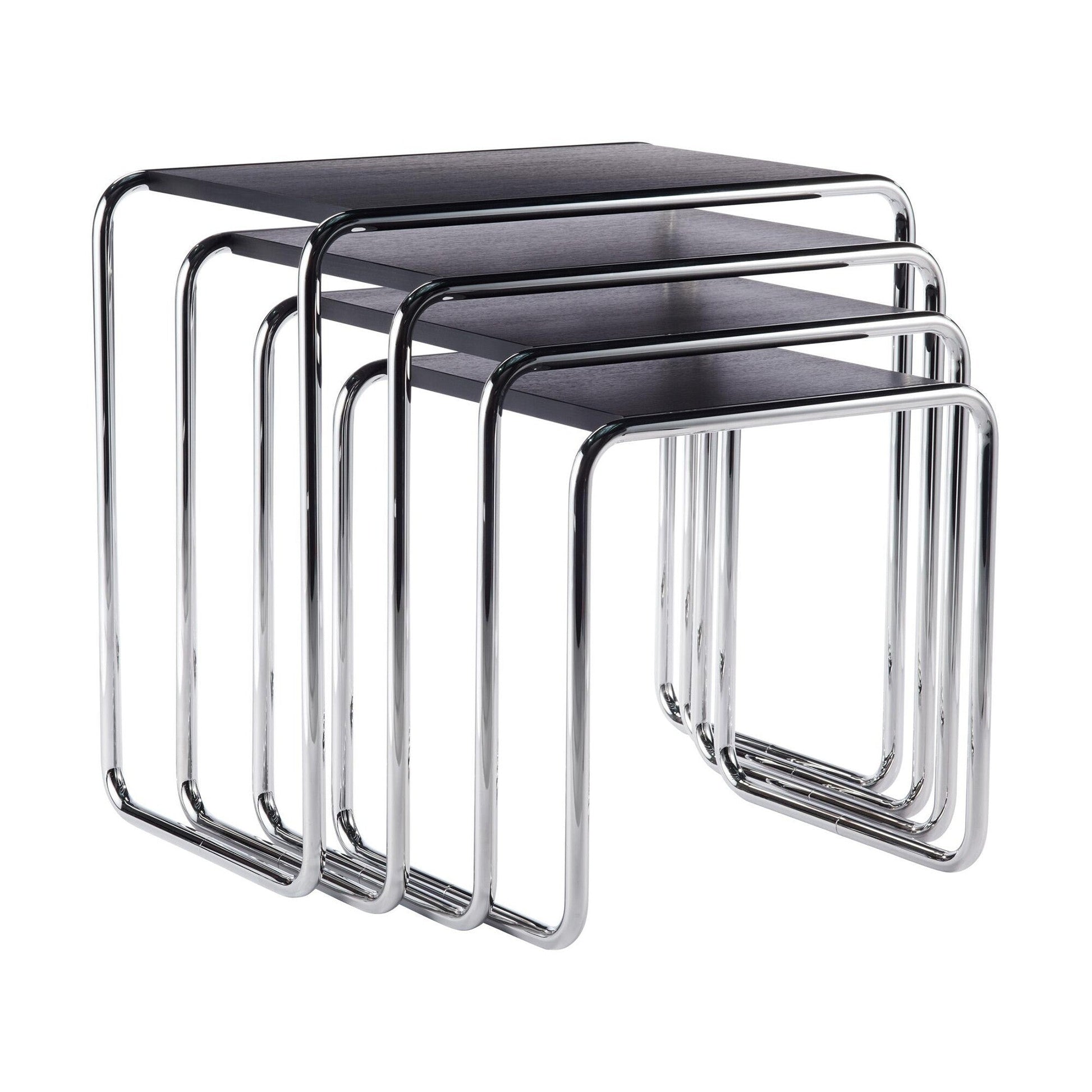 Ausführungen: B 9 Beistelltisch 4er Set Buche / schwarz /gebeizt/4 Tische B 9a, b, c, d/Gestell Stahlrohr vechromt