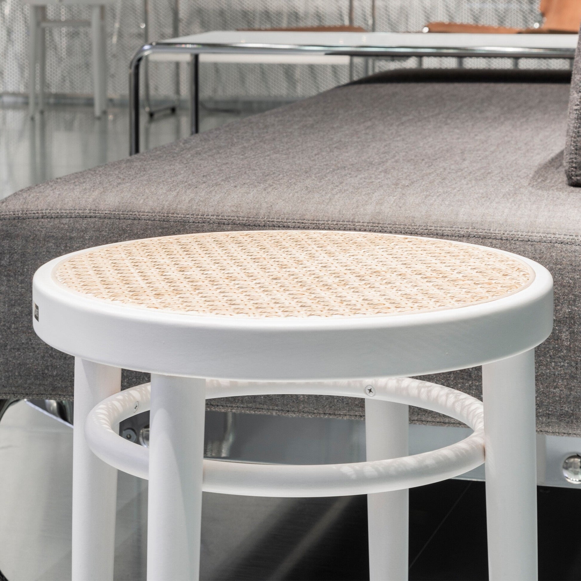 Der 214 RH Hocker ist ein Meisterwerk der Möbelkunst, das von den Gebrüdern Thonet für die Marke Thonet entworfen wurde. Als ikonisches Designstück aus dem Jahr 1880 überzeugt er mit schlichter Eleganz und bemerkenswerter Zeitlosigkeit. Charakteristisch für den Hocker ist das gebogene Massivholz seines Gestells, das eine einzigartige Atmosphäre schafft.