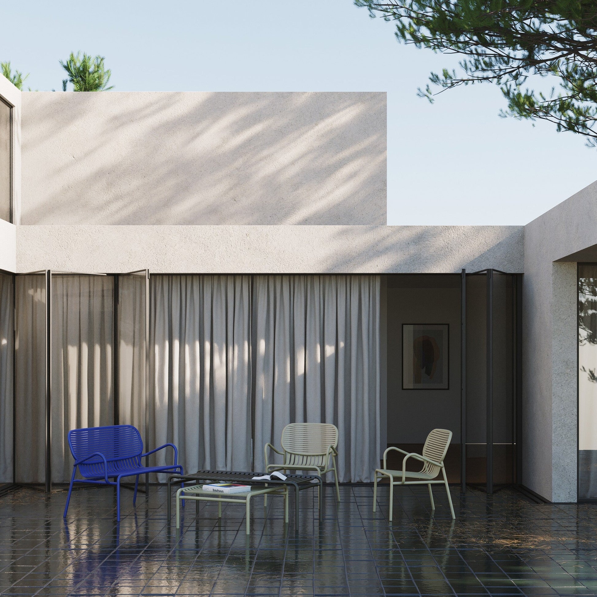 Der exklusive Week-End Gartenarmlehnstuhl von Petite Friture ist ein Meisterwerk des französischen Designs. Entworfen von Studio BrichetZiegler, einem renommierten Designer, bringt dieser Stuhl ein unvergleichliches Flair in Ihren Garten. Mit seinen sommerlichen Nuancen in Ultramarinblau und Matt-Bordeaux oder den klassischen Farben Schwarz und Weiß, ist er der perfekte Begleiter für sorglose Nachmittage auf der Terrasse, dem Balkon oder neben dem Pool.