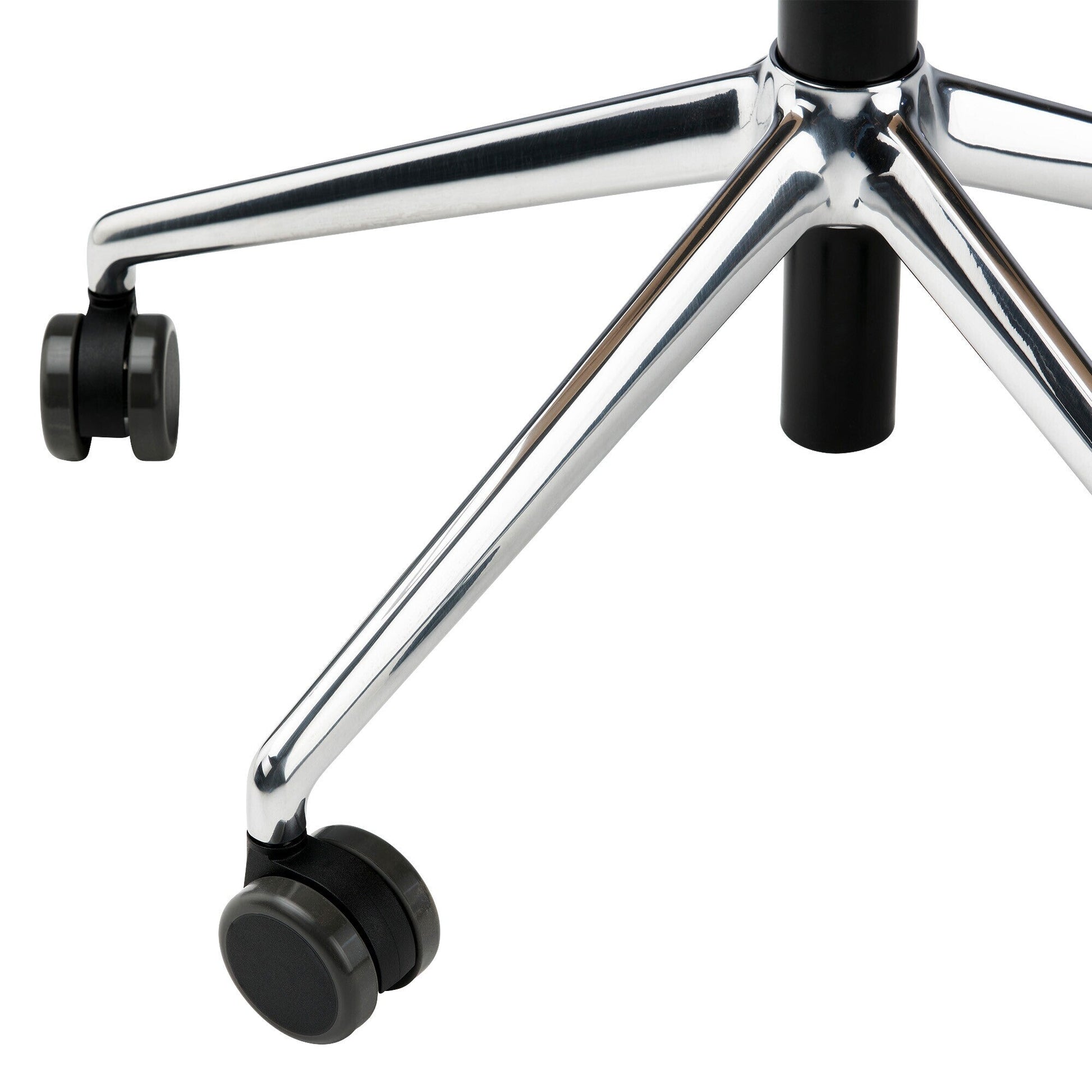 Der fünfteilige Sternfuß aus hochwertigem, glänzend poliertem Aluminium garantiert eine hohe Belastbarkeit und bietet zusätzliche Stabilität. Dank der praktischen Rollen lässt sich das über einen Hebel unter der Sitzschale höhenverstellbare Sitzmöbel schnell an den gewünschten Ort bewegen.