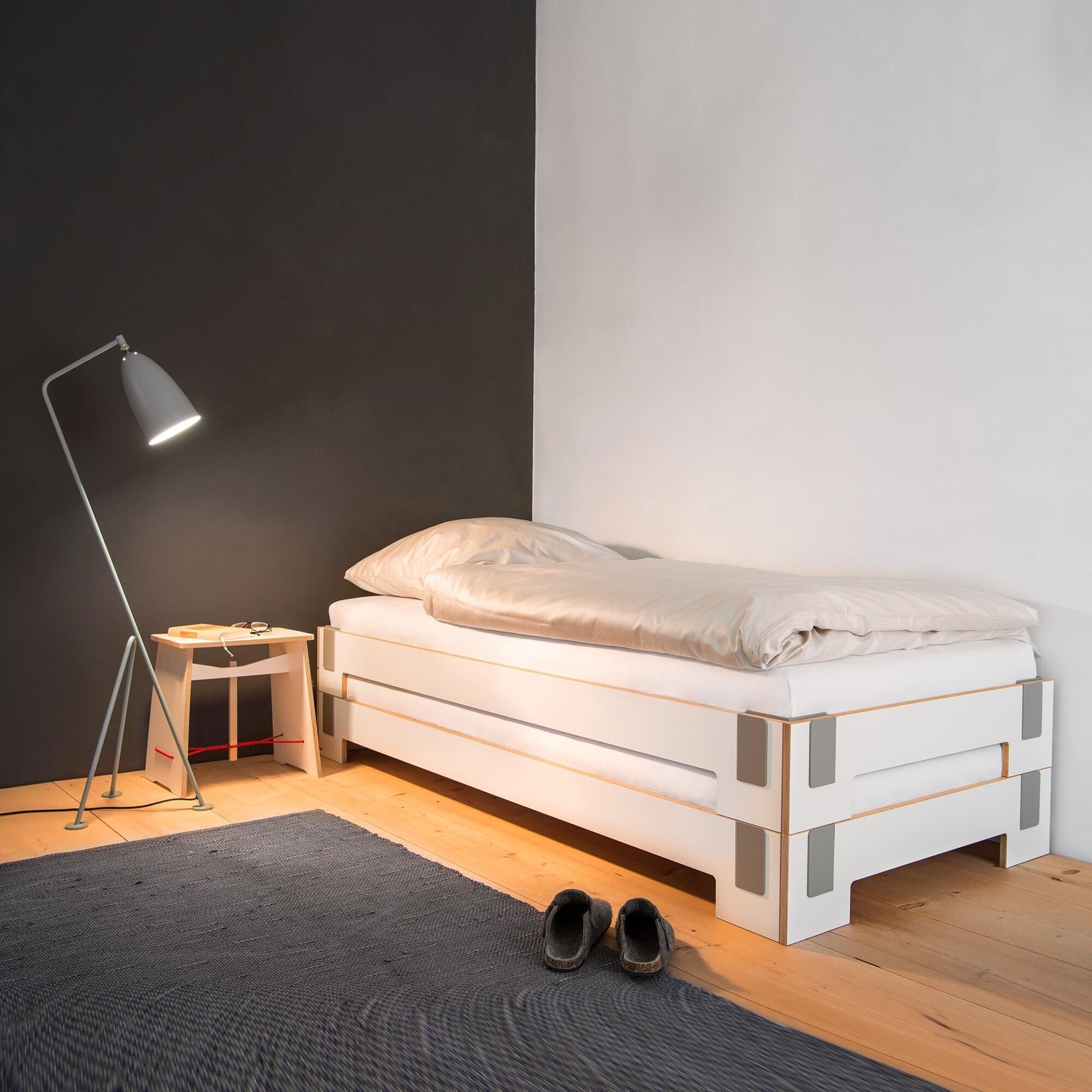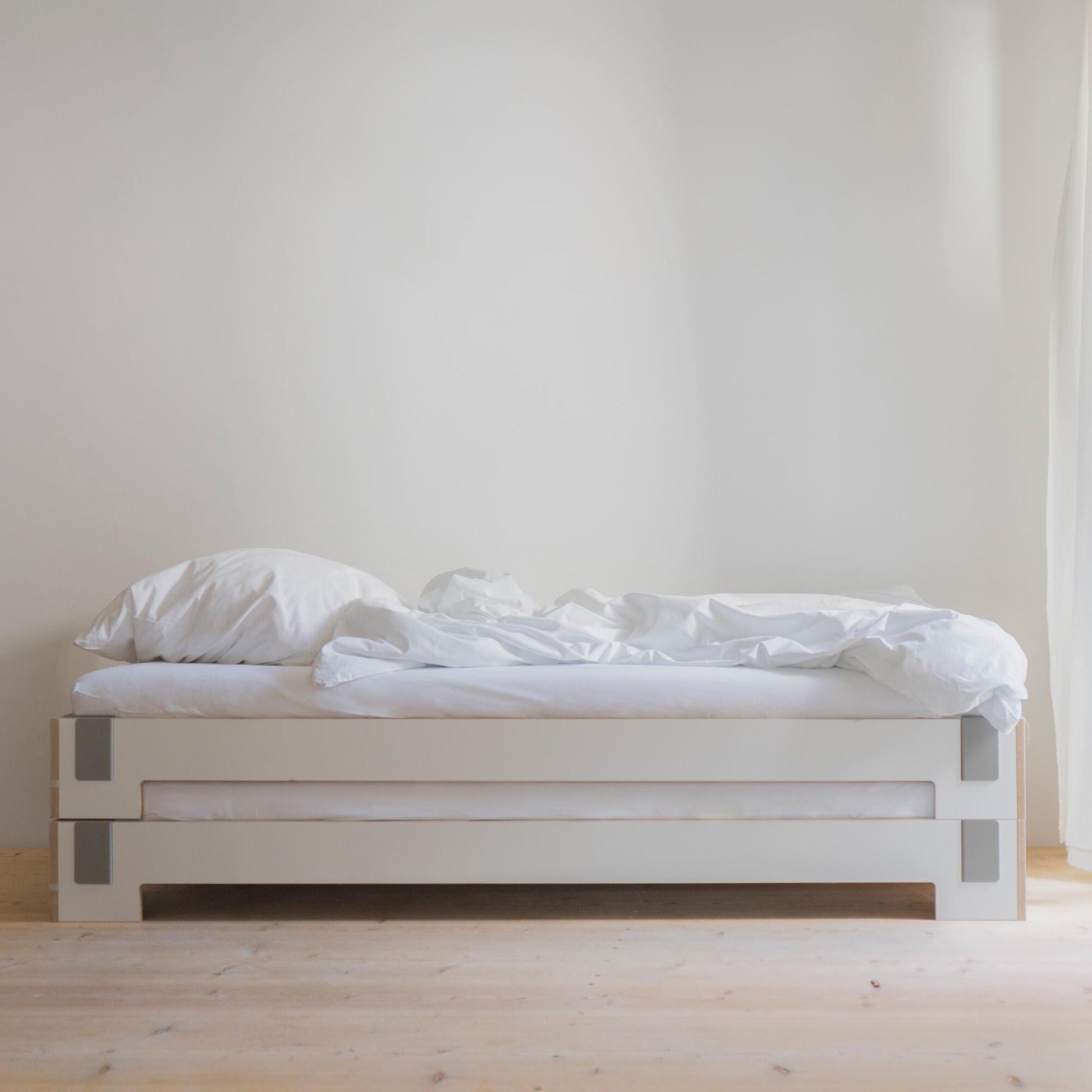 Das Tagedieb Stapelbett 100x200cm - eine Meisterleistung der deutschen Möbelkunst. Entworfen von der renommierten Designerin Carmen Buttjer für die exklusive Marke Moormann, besitzt dieses Bett die Fähigkeit, Raum zu schaffen und stilvoll zu verbergen.