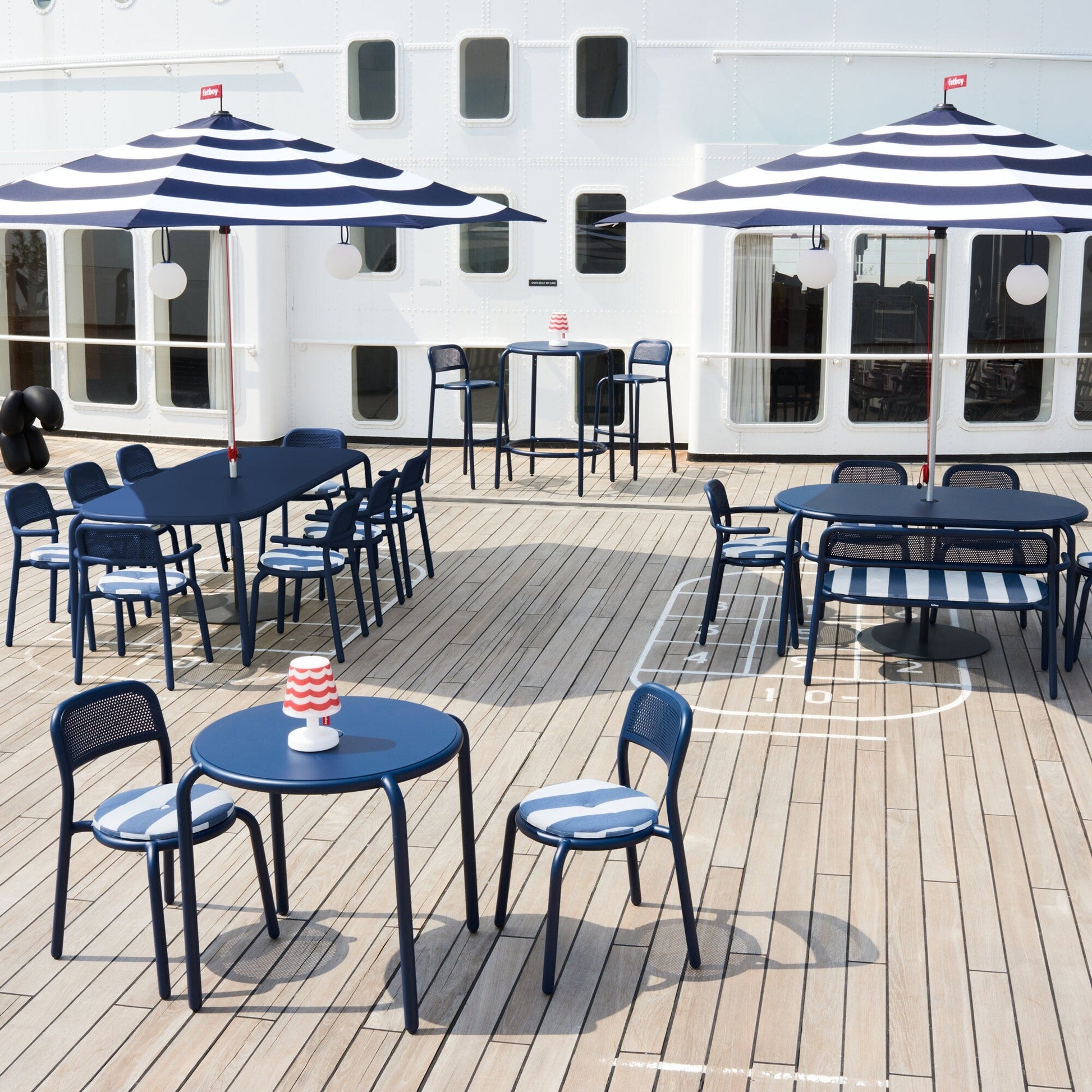 Der Toní Gartenstuhl ist eine Meisterleistung aus Aluminium, das mit Axalta beschichtet wurde, um die höchsten Anforderungen im Außenbereich zu erfüllen. Die Leichtigkeit und Wetterfestigkeit des Stuhls sind garantiert, während die Konstruktion aus Aluminiumrohr ihn zu einer besonders stabilen Sitzgelegenheit macht. Die runde, mit Löchern versehene Sitzfläche gewährleistet ein problemloses Abfließen von Wasser, was ihn zu einem idealen Bistrostuhl für Balkon, Garten, Wohnbereich oder Küche macht. Im gewerblichen Bereich, wie in Cafés, ist der Toní Gartenstuhl ebenfalls einsetzbar.