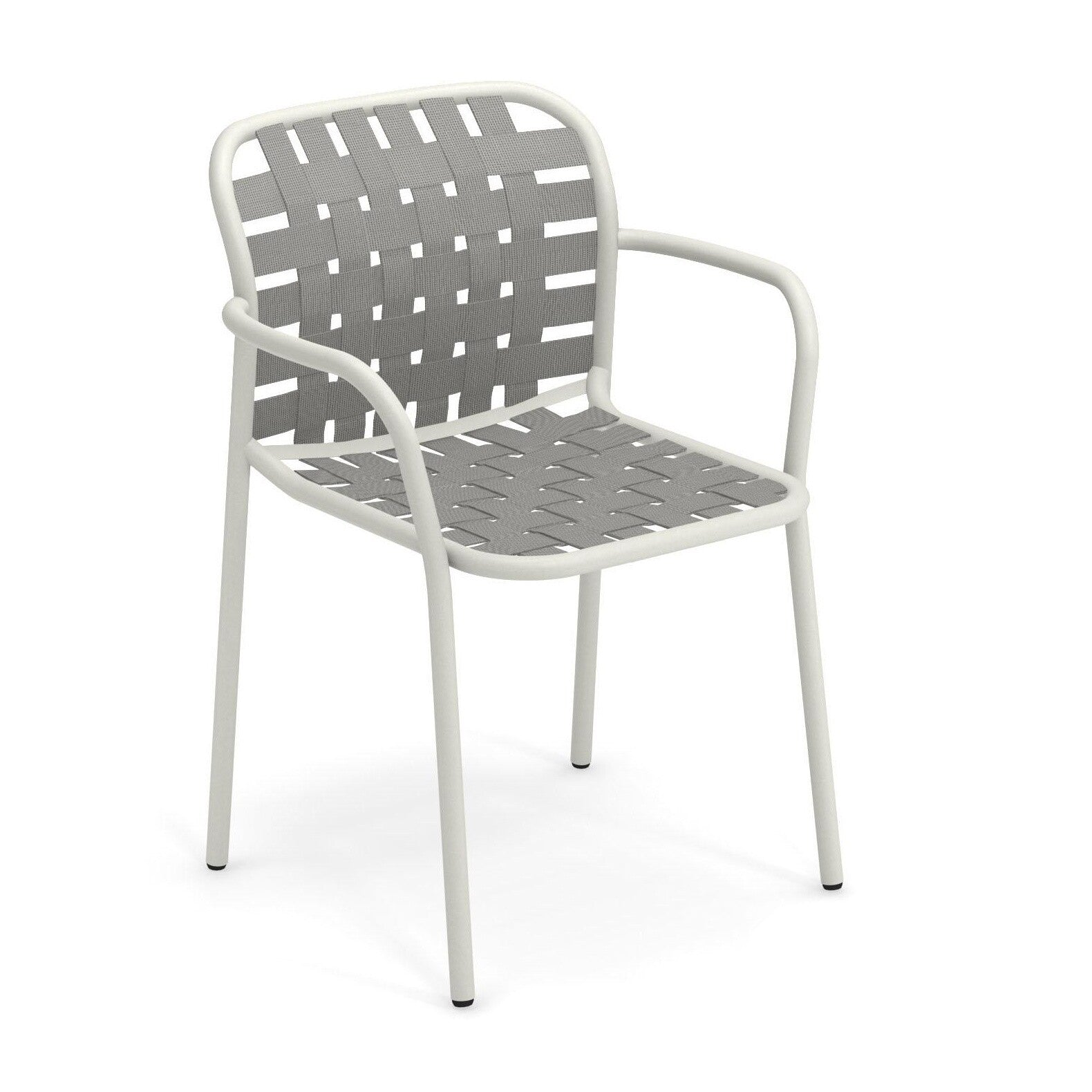 Ausführungen: Yard Gartenarmlehnstuhl / weiß, graugrün/Sitz elastische Gurte graugrün/BxHxT 58x81x55cm/Gestell weiß