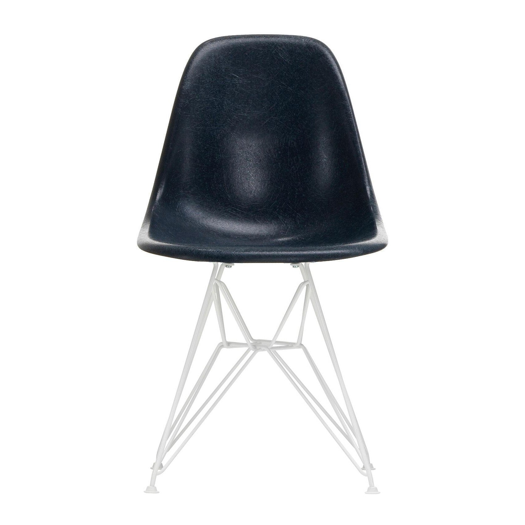 Ausführungen: Eames Fiberglass Side Chair DSR weiß / marineblau/Sitzschale Fiberglas/Eiffelturmgestell weiß pulverbeschichet/BxHxT 46,5x83x55cm