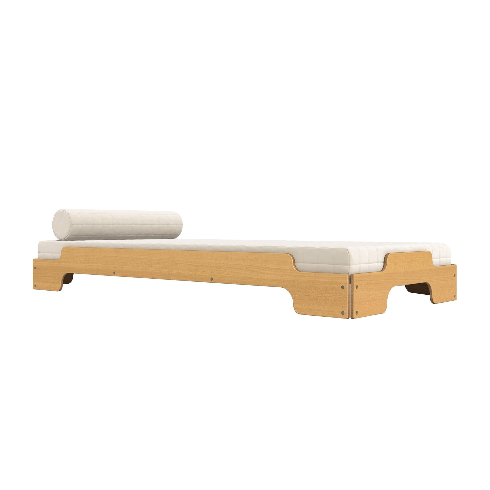 Diese vielseitige Liege ist nicht nur im Kinder- oder Gästezimmer zu Hause, sondern kann in jedem Raum aufgestellt werden, wo eine zusätzliche Schlafmöglichkeit benötigt wird. Durch ihre Flexibilität passt sie zu jedem Einrichtungsstil und kann bis zu zehn Betten übereinander gestapelt werden, um Platz zu sparen. Die stabile Konstruktion aus neunfach verleimtem Schichtholz hält selbst großen Belastungen stand, dank des 15 mm dicken Materials.