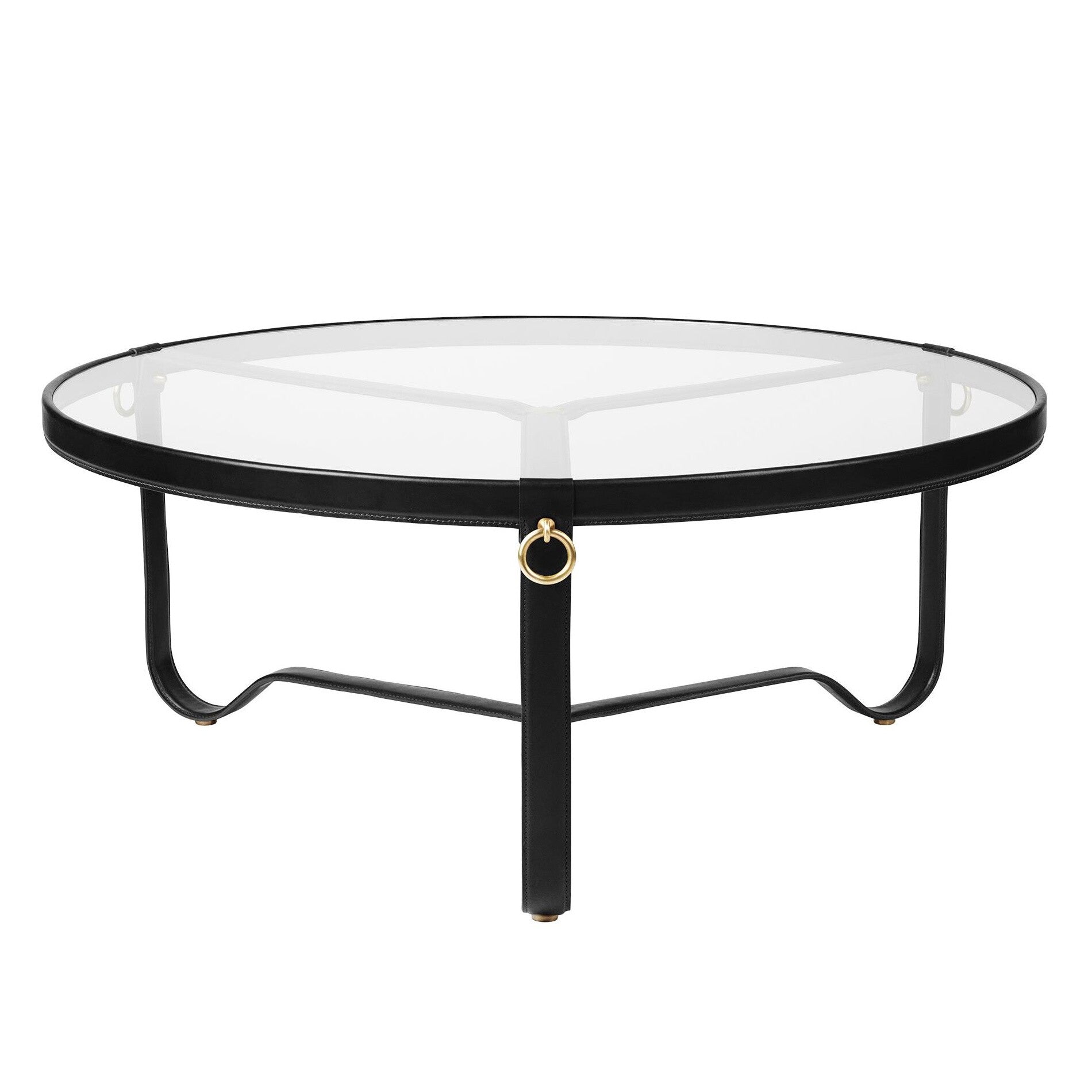 Ausführungen: Adnet Couchtisch Ø 100cm / schwarz/Tischplatte Glas/H x Ø 43x100cm/Gestell Leder