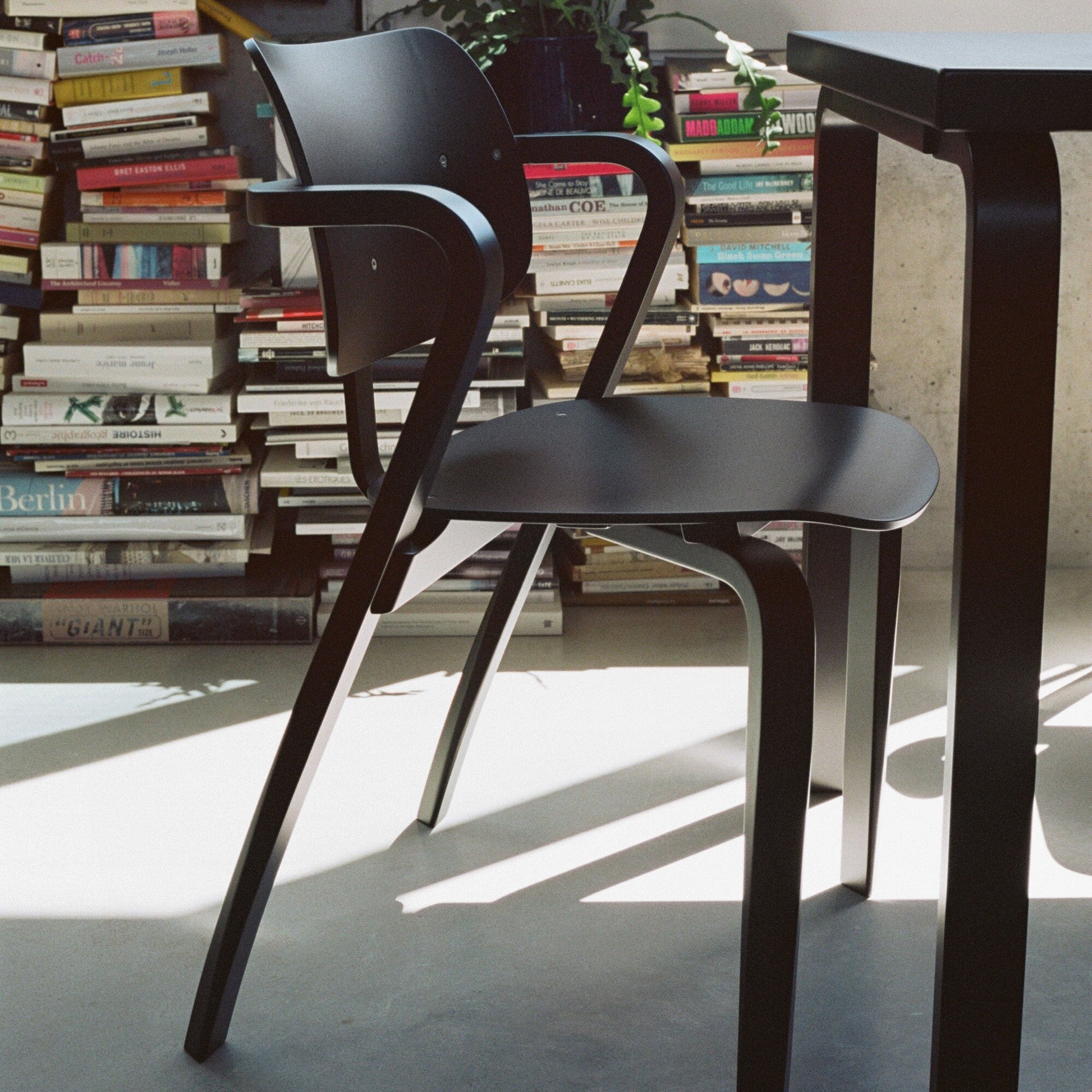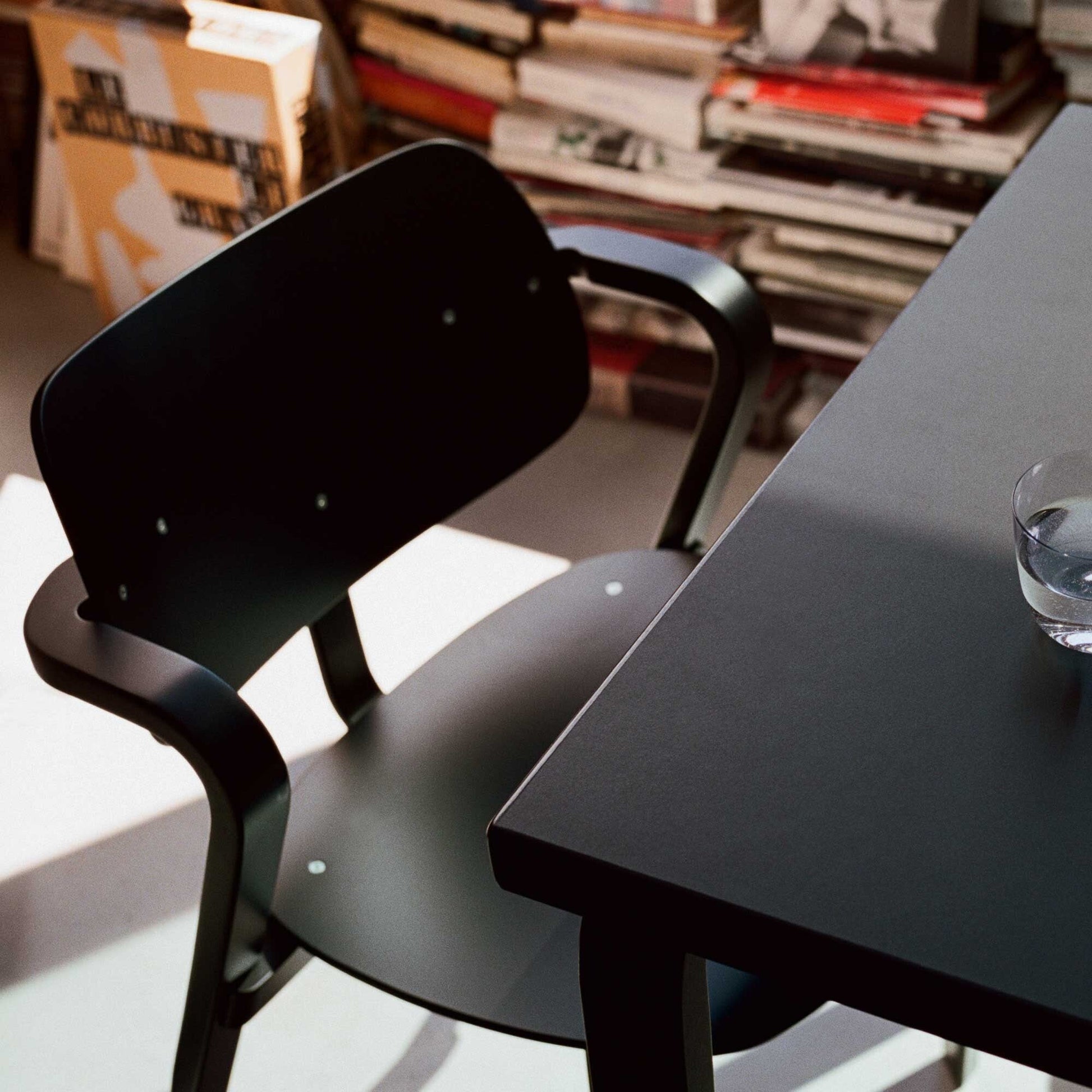 Der Aslak Armlehnstuhl - ein Meisterwerk der modernen Möbelkunst. Entworfen von Ilmari Tapiovaara für die renommierte Marke Artek, präsentiert sich dieses Designstück als ein Perfektionsspiel aus Form und Funktion. Bereits in den späten 1940er Jahren entstand die Idee für diesen Stuhl, doch erst einige Jahre später war es technisch möglich, das Material Holz in der gewünschten Weichbiegung zu fixieren.