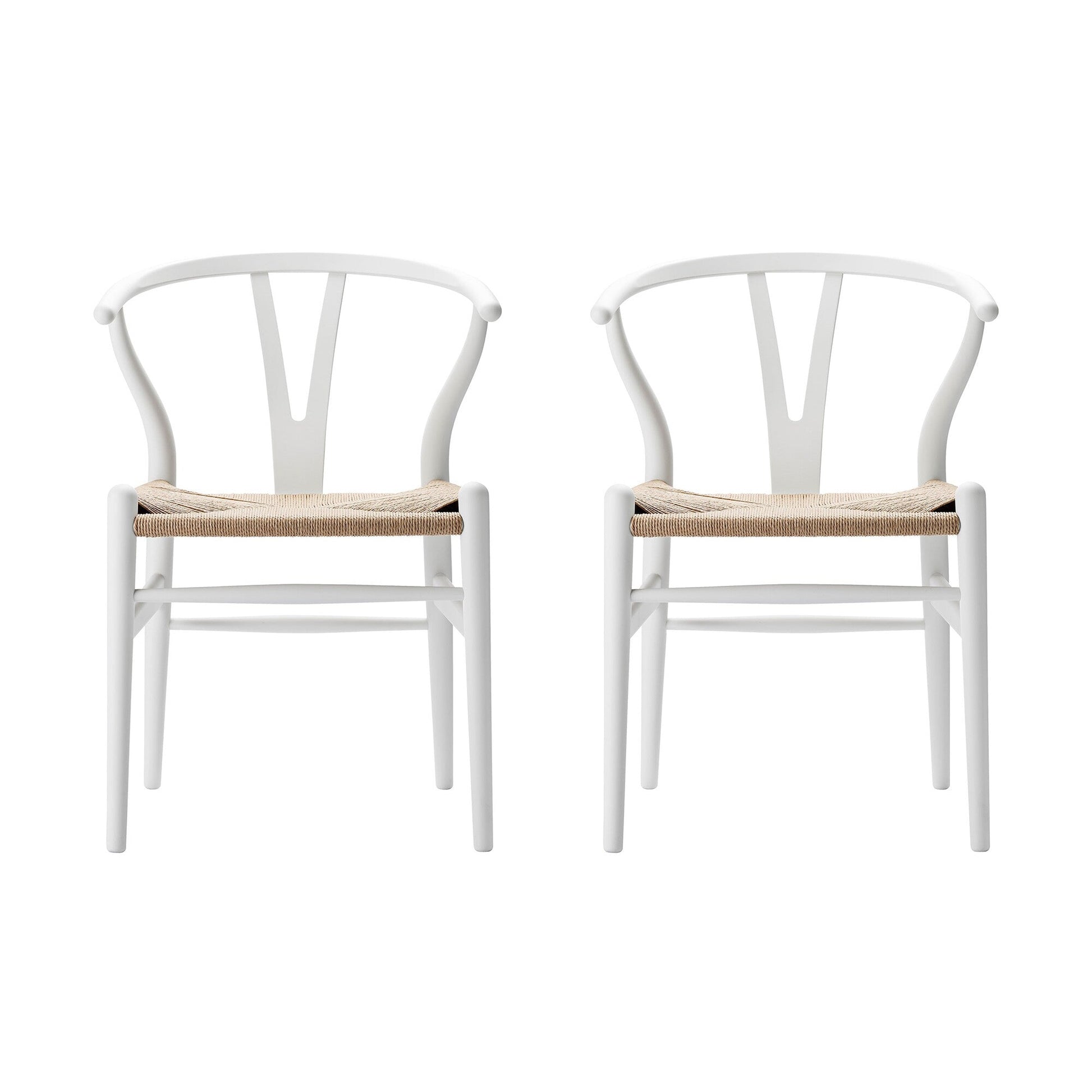 Ausführungen: CH24 Soft Wishbone Chair Gestell Buche 2er Set / soft weiß NCS S0502Y/Geflecht Papiergarn/BxHxT 55x76x51cm