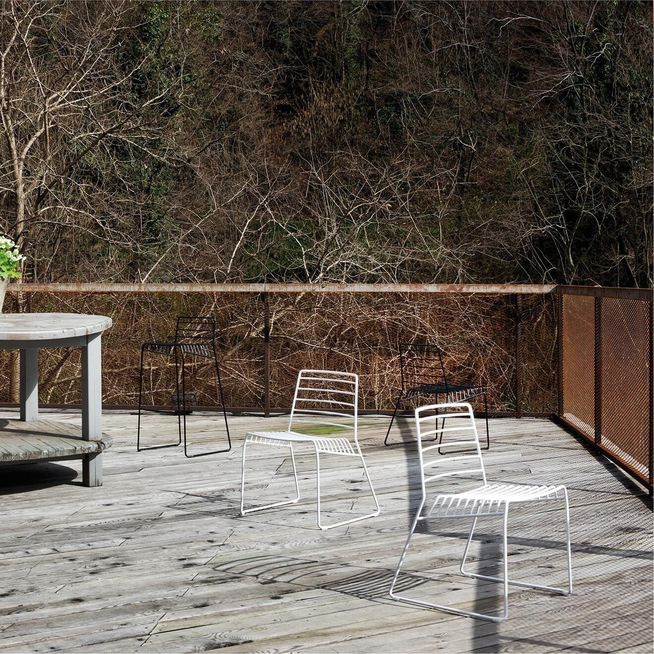 Obwohl das Design filigran wirkt, ist der Park Stuhl mit bis zu 100kg belastbar und bietet eine platzsparende Aufbewahrungsmöglichkeit, da er sich stapeln lässt. Die deutsche Designgruppe Neuland Paster & Geldmacher fand ihre Inspiration im klassischen, französischen Outdoor-Stuhl aus Metall und in Schnur bespannten Stühlen.