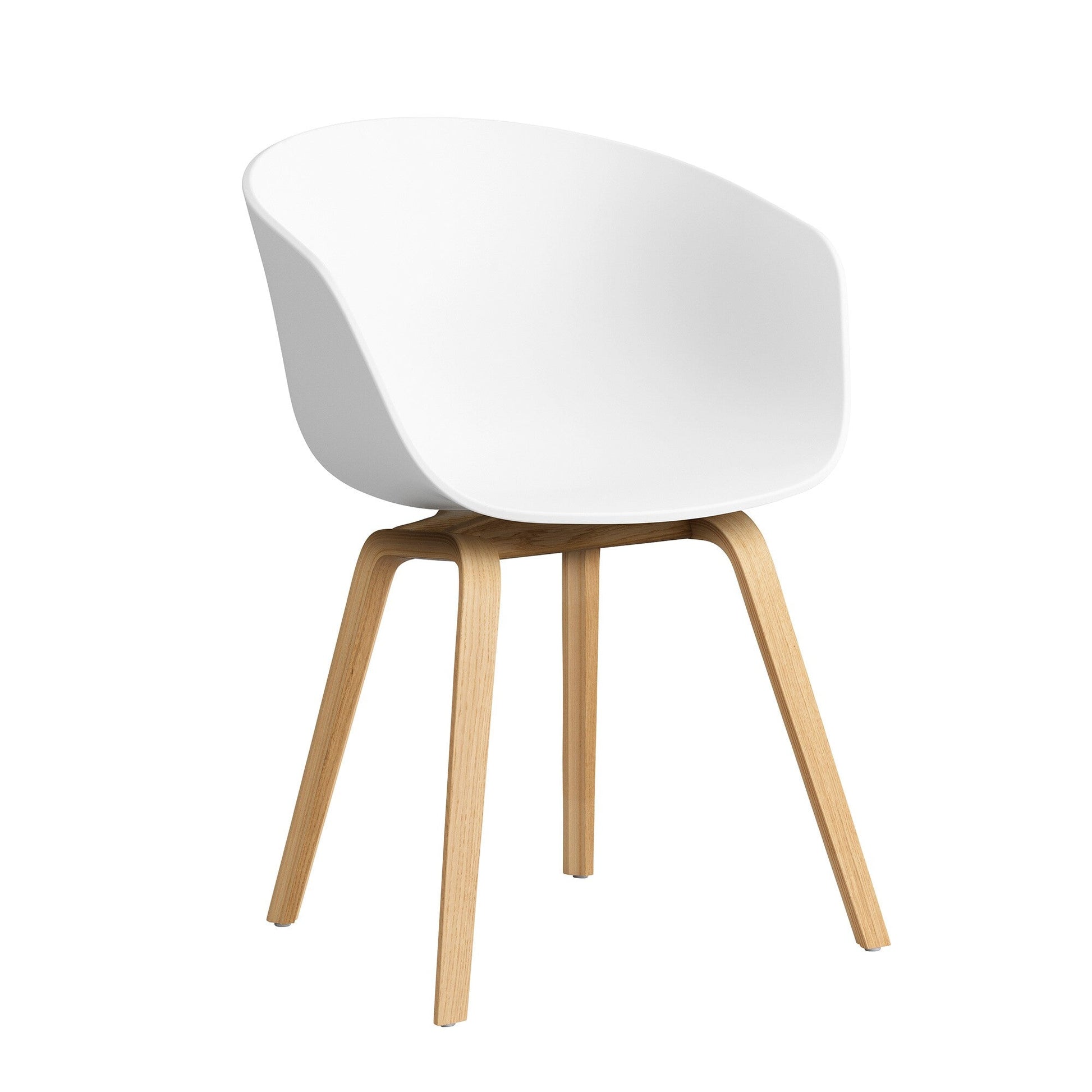 Ausführungen: About a Chair AAC 22 2.0 Armlehnstuhl Eiche lackiert / weiß/Sitzschale Polypropylen recycelt/Gestell Eiche lackiert (wasserbasiert)/mit Filzgleitern