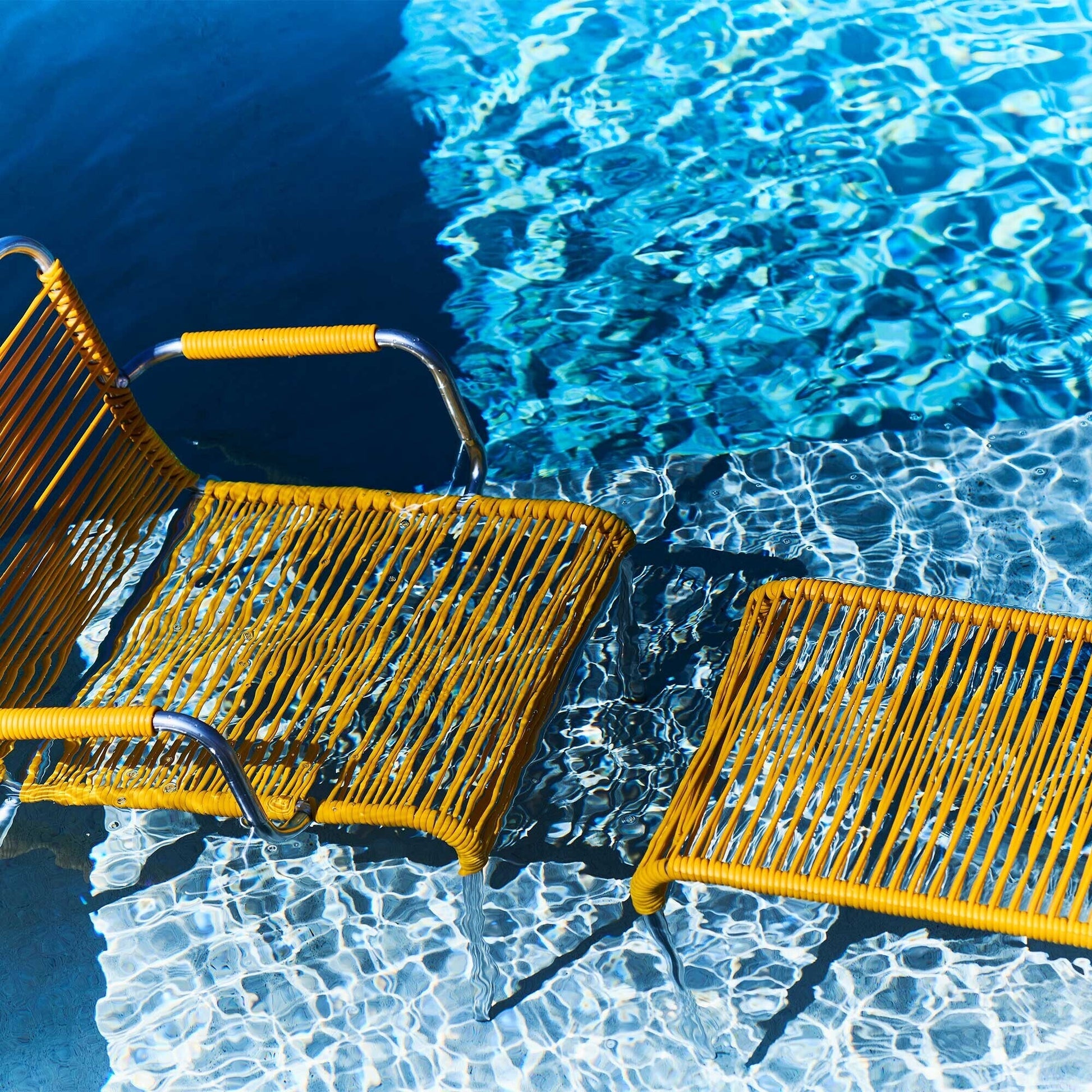 In einer breiten Palette neutraler bis farbenfroher Farben kann der Fiam Mya Spaghetti Gartenloungesessel jede Terrasse und jeden Balkon mit einem fröhlichen Ambiente versehen. Die markante spaghetti-ähnliche Bespannung der leicht geneigten Rückenlehne und der tiefen Sitzfläche verleiht dem Sitzmöbel eine luftige Anmutung, die durch die robusten PVC-Bänder noch unterstrichen wird.