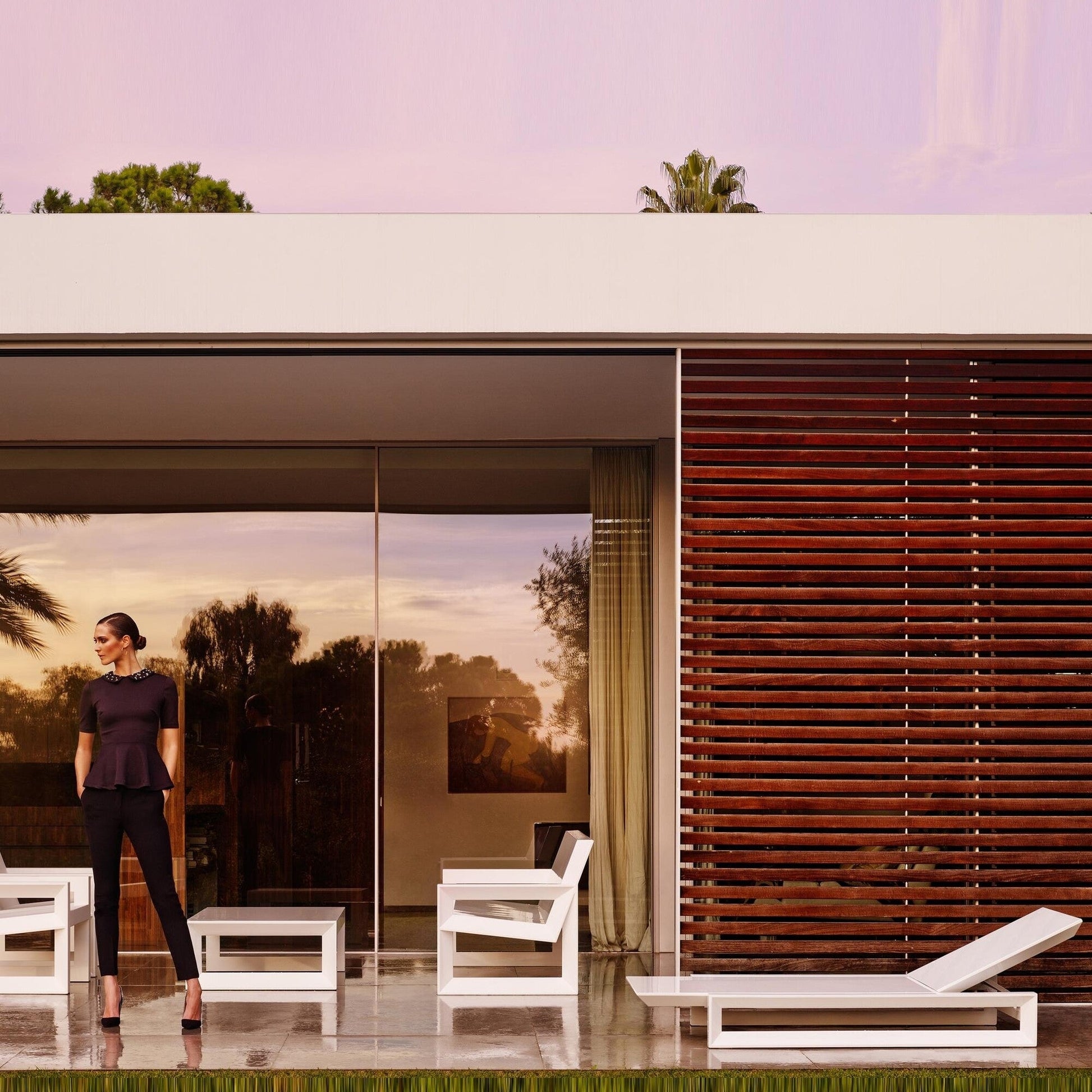 Grafische Einkerbungen lockern die strenge Linie auf und verleihen der Frame Sonnenliege von Vondom einen neuen Rahmen, der sie im Garten, in der Outdoor-Lounge, auf der Terrasse oder neben einem Pool zur Geltung bringt. Die 200 cm lange und 80 cm breite Gartenliege ist ideal für lange Nachmittage im Freien und lässt sich perfekt mit dem Frame Beistelltisch ergänzen.