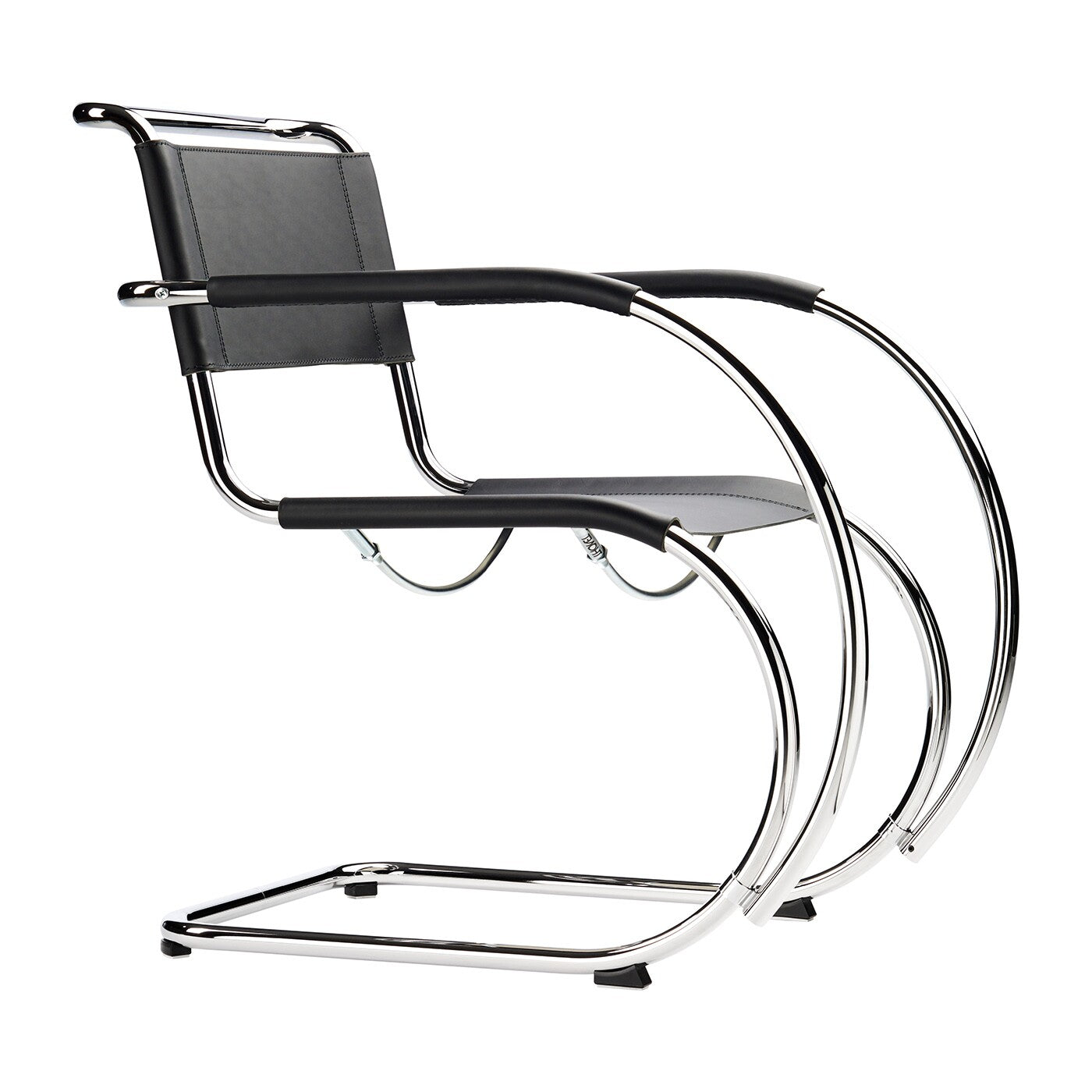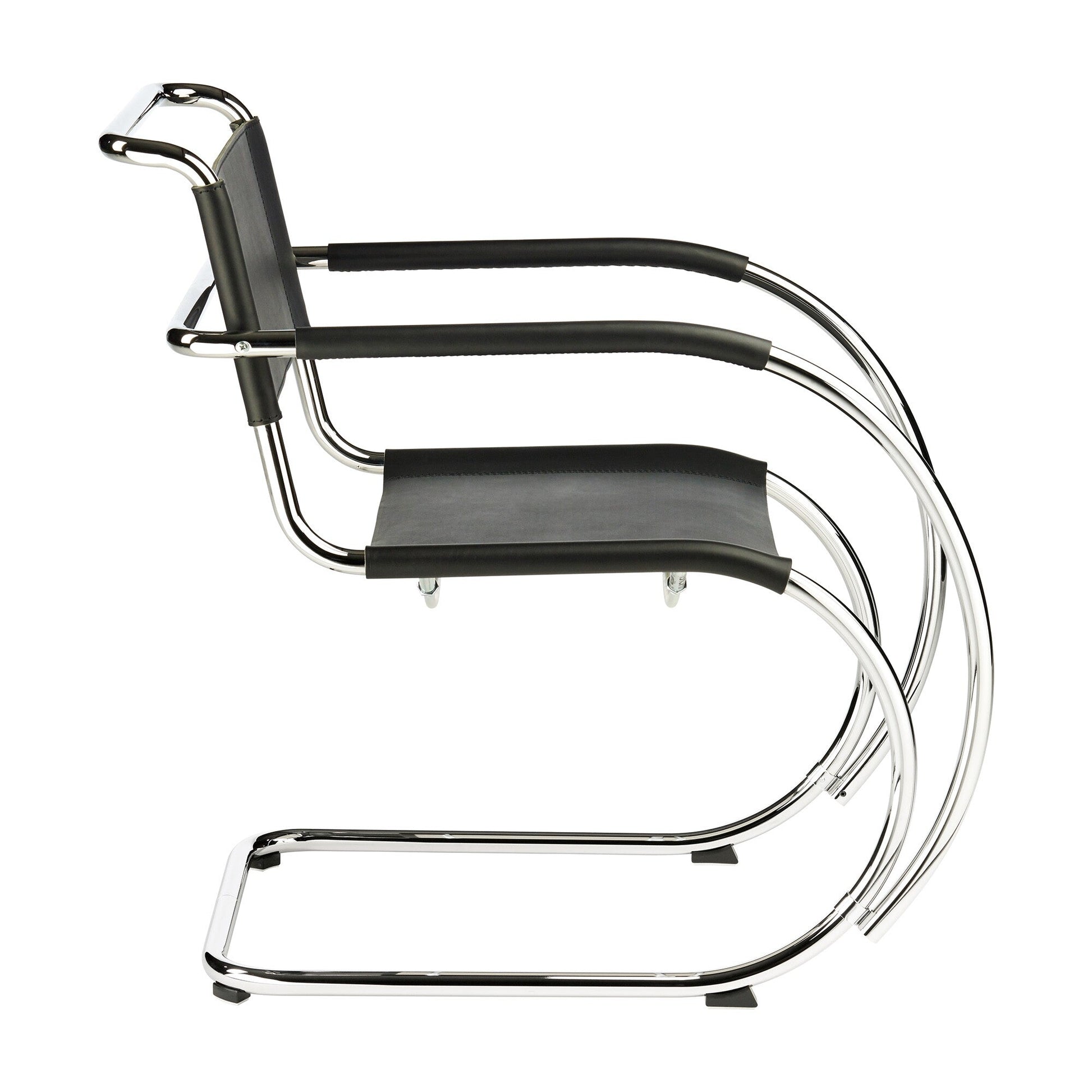 Ausführungen: S 533 LF Freischwinger Armlehnstuhl / schwarz/Kernleder/BxHxT 55x82x84cm/Gestell Stahlrohr vechromt