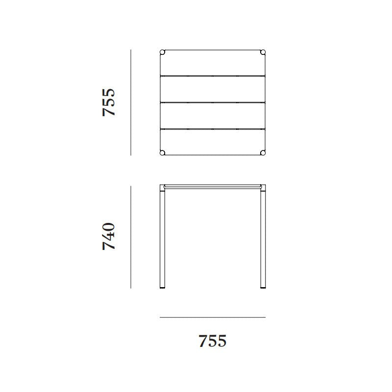 Der Sine Gartenesstisch ist ideal für die Verwendung auf der Terrasse oder im Garten, wo er mit seinen 75,5x75,5 cm Maßen einen perfekten Platz für kleine Gesellschaften oder intime Abende bietet.