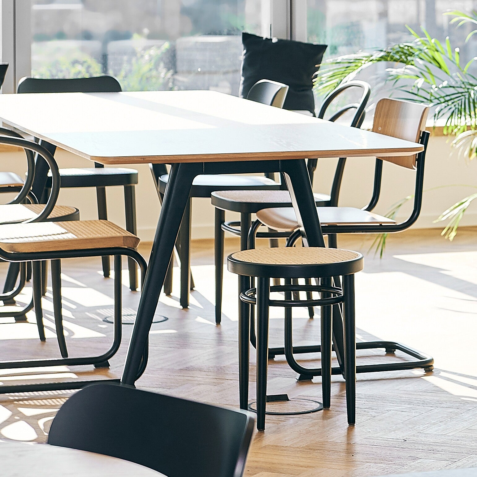 Der 214 RH Hocker - ein Meisterwerk der Möbelkunst, geschaffen von den Gebrüdern Thonet für die Marke Thonet. Als ikonisches Designstück aus dem Jahr 1880 verbindet dieser runde Hocker höchsten Komfort mit unvergleichlichem Wiener Kaffeehauscharme. Ob in einem exklusiven Restaurant, einer modernen Coworking-Zone oder im eigenen luxuriösen Esszimmer: Der 214 RH Hocker überzeugt mit schlichter Eleganz und bemerkenswerter Zeitlosigkeit.