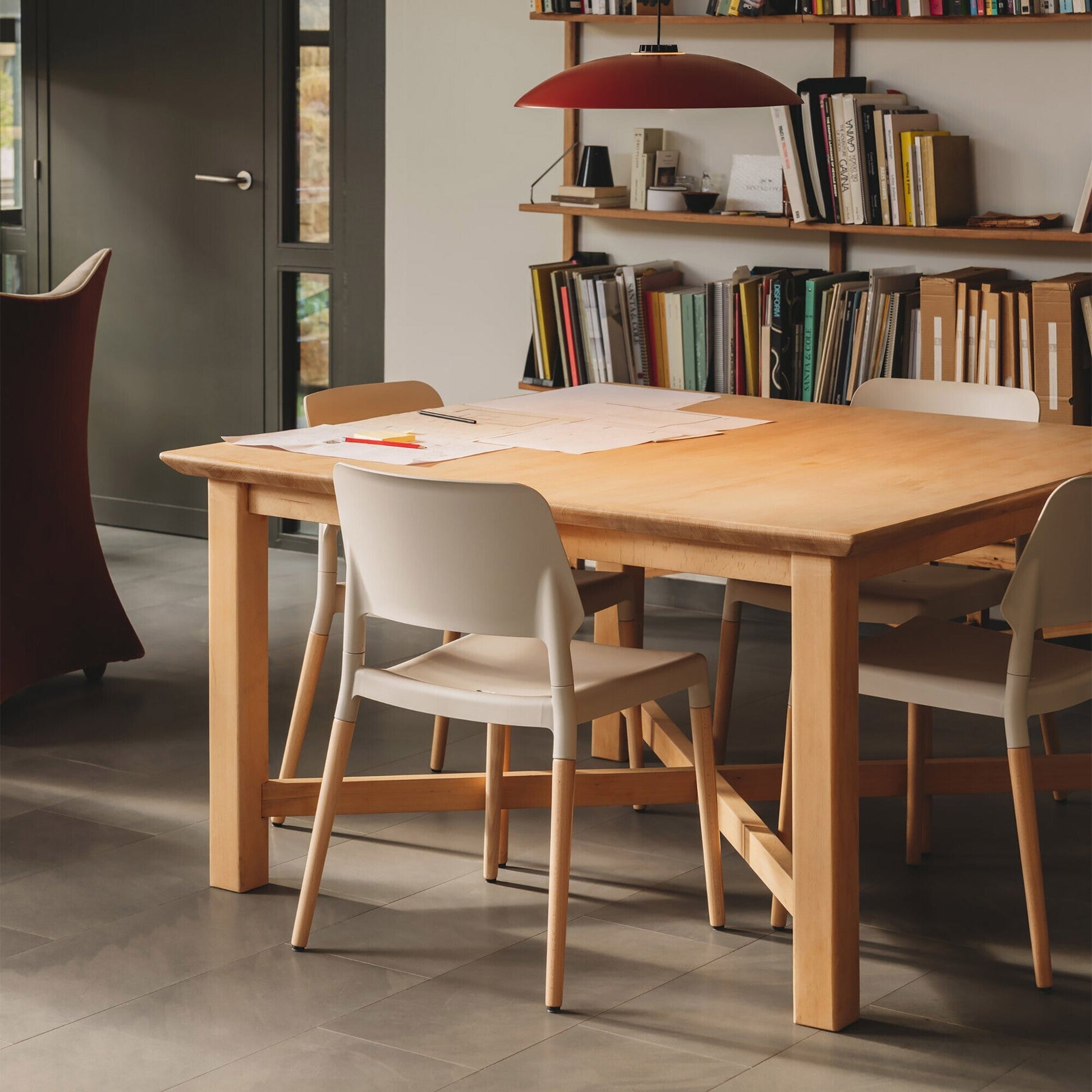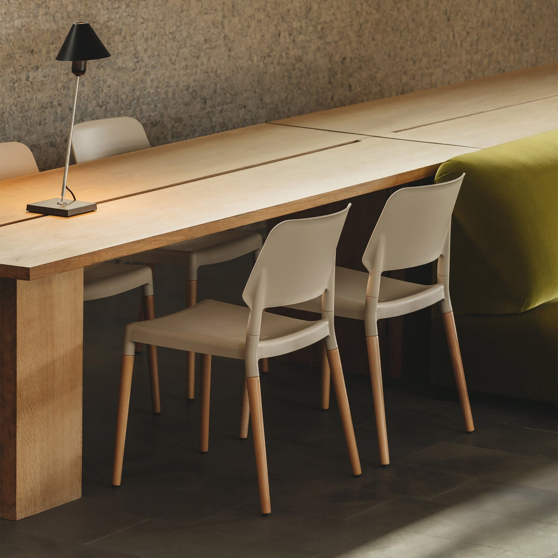 Der Belloch Stuhl ist ein Klassiker, der durch seine Materialien und Techniken zukunftsgerecht ist. Ein Spezialmix aus recyclebarem Plastik und Holz formt den eleganten Korpus des Stuhls, der von Stuhlbeinen aus Buchenholz getragen wird. Für den Außenbereich werden die Stuhlbeine aus Aluminium empfohlen.