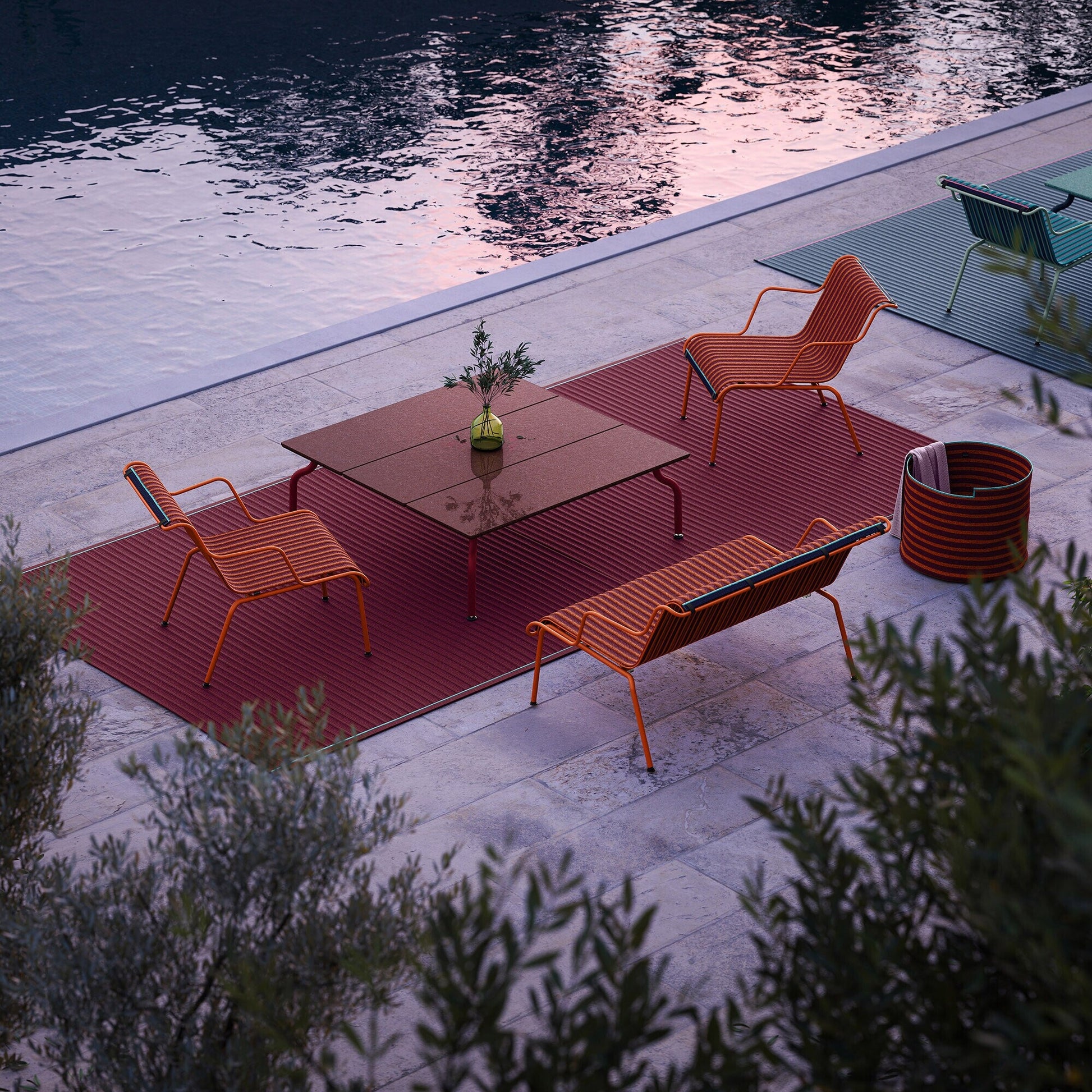 Mit ihrer einzigartigen gitterartigen Konstruktion wirkt die South Gartenbank niedrig 120cm wie eine dekorative Skulptur, die den Hintergrund großzügig durchscheinen lässt. Der harmonisch geschwungene Rahmen bietet einen bequemen Sitz und eine gute Stabilität, während die parallel aneinandergereihten Drahtstäbe komfortablen Platz für bis zu drei Personen bieten. Die robuste Stahlkonstruktion und die wasserabweisende Polyesterschicht überzeugen durch ihre Langlebigkeit, sodass die South Gartenbank niedrig 120cm jedem Wetter trotzt.