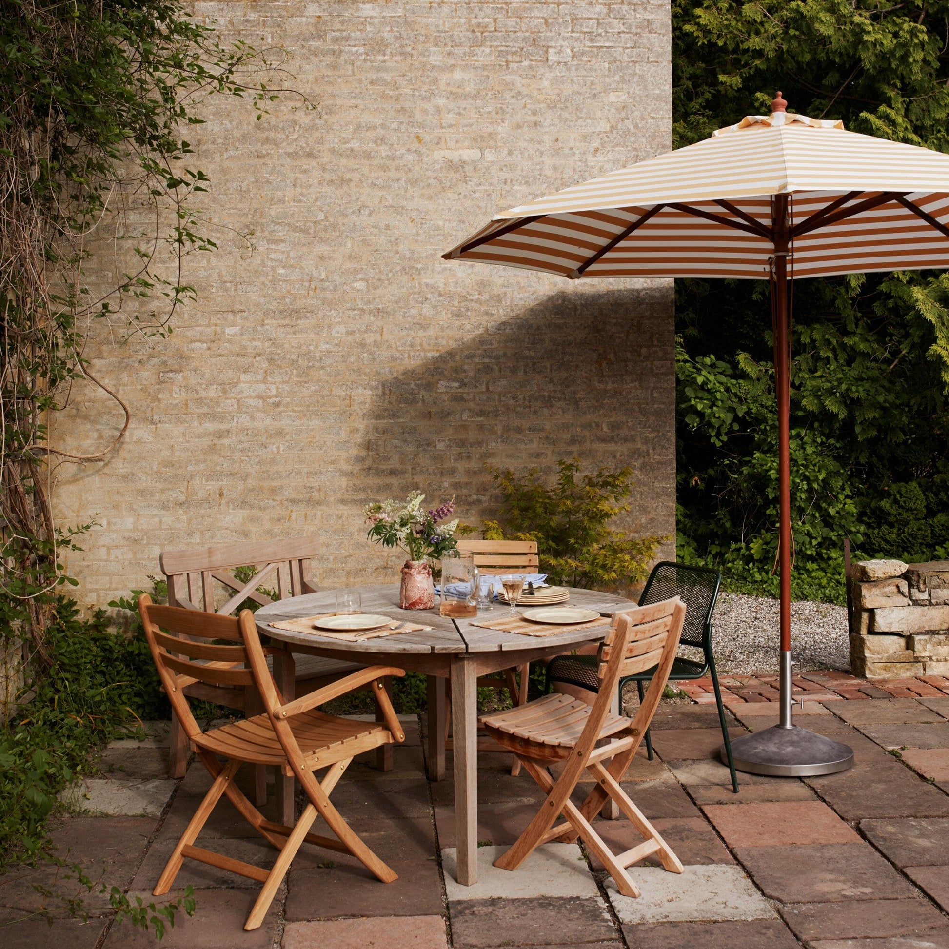 Das Gestell des Skagerak Messina Sonnenschirms wird aus robustem Meranti-Plantagenholz gefertigt, das für einen stabilen Halt sorgt. Der Sonnenschirm besteht aus strapazierfähigem Tuch, das sich ideal für die Bedingungen im Garten eignet. Für noch mehr Standfestigkeit empfehlen wir die Nutzung eines Schirmständers.