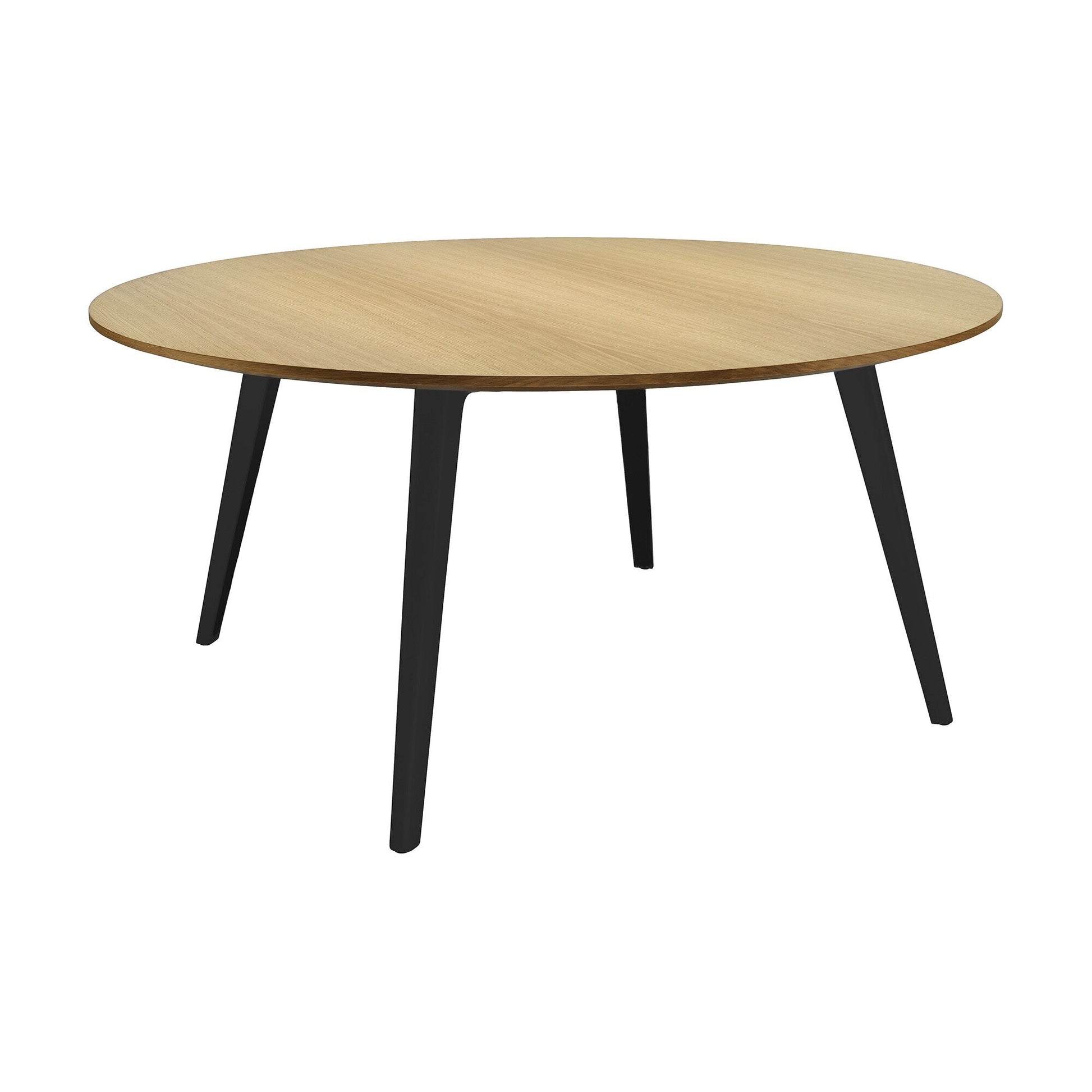 Der 1545 Esstisch Ø158cm ist ein Meisterwerk des zeitgenössischen Designs, das von Wolfgang C.R. Mezger für die renommierte Marke Thonet entworfen wurde. Besonders auffällig sind die Beine, die in einem 45-Grad-Winkel zur Traverse angeordnet sind und den Tisch ein elegantes und modernes Aussehen verleihen.