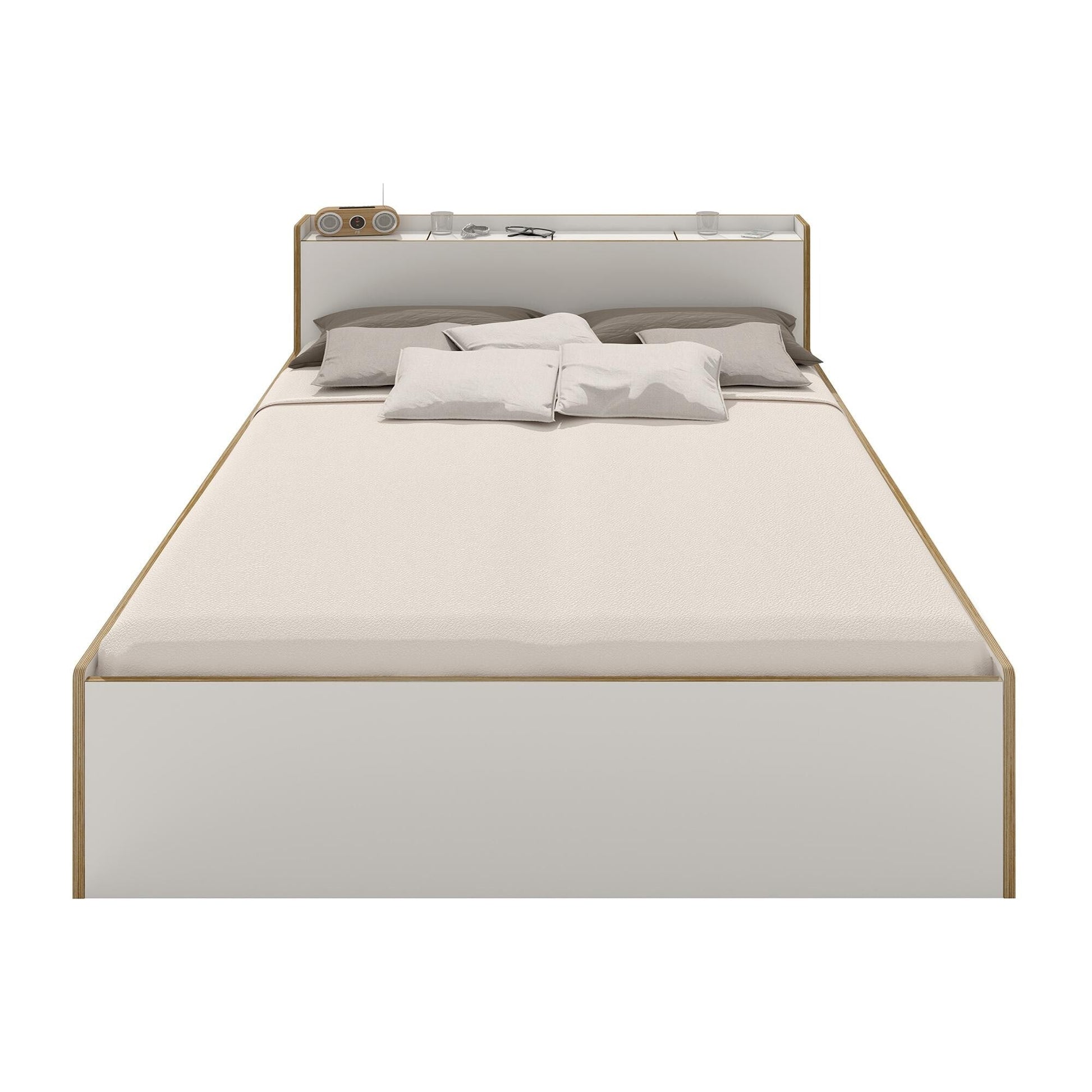 Ein besonderer Vorteil dieses Möbelstücks ist die Abstellfläche am Kopfteil, auf der Leuchten, Wecker und andere Utensilien sicher abgestellt werden können. Die unauffällig gestalteten Öffnungen für die Kabel sorgen für einen sauberen und ordentlichen Eindruck. Die Platten, die das Kopfteil teilweise bedecken, können mit einem Klappscharnier geöffnet werden und bieten zusätzlichen Stauraum. Die Fächer sind nicht nur mit Kabelauslässen ausgestattet, sondern auch so gestaltet, dass sie viel Stauraum bieten und einen harmonischen Gesamteindruck vermitteln.