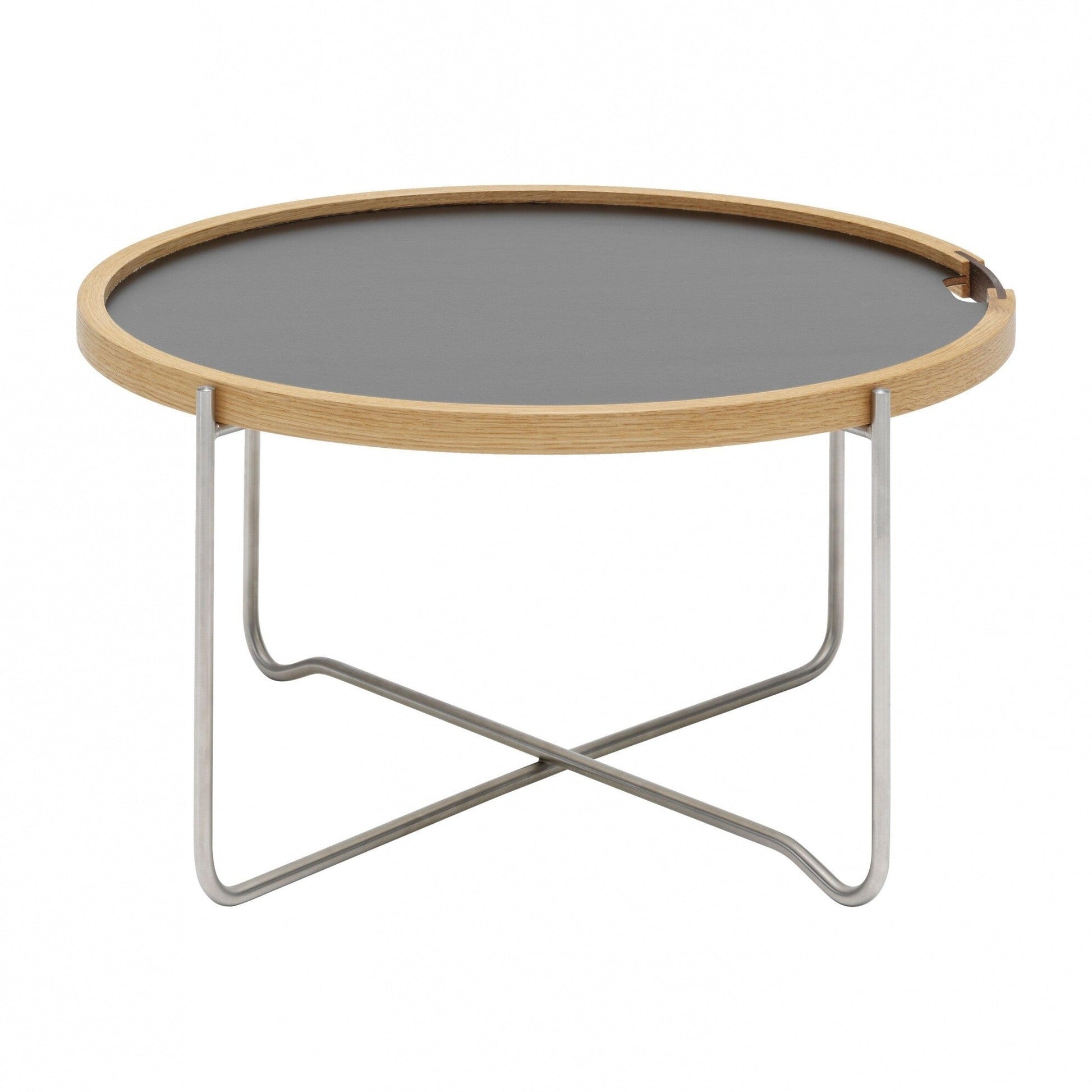 Ausführungen: Carl Hansen CH417 Beistelltisch/Tabletttisch / schwarz/weiß/eiche/Laminat/Gestell Stahl/Ø62cm/H 33cm/abnehmbares Tablett beidseitig nutzbar