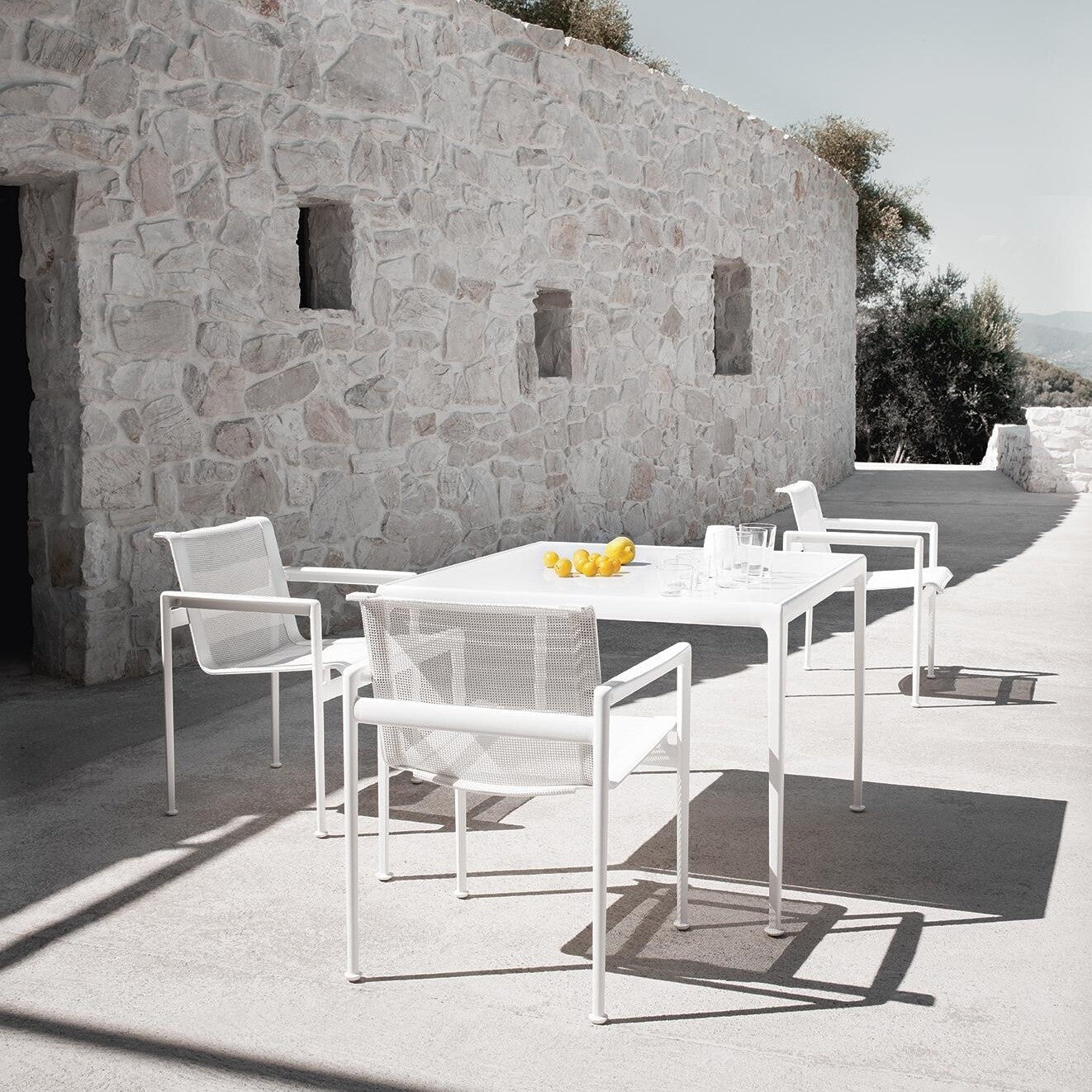 Der 1966 Richard Schultz Gartenarmlehnstuhl besticht durch seine puristische Optik und klaren Linienführung. Ohne auf zusätzliche Designs zu verzichten, macht dieser Armlehnstuhl immer eine ausgezeichnete Figur, ob auf der Terrasse, dem Balkon oder im Garten. Die "1966 Collection" bietet eine perfekte Ergänzung für diesen Stuhl, mit Tischen und Beistelltischen, die sich harmonisch in die Gesamtdesignung einfügen.