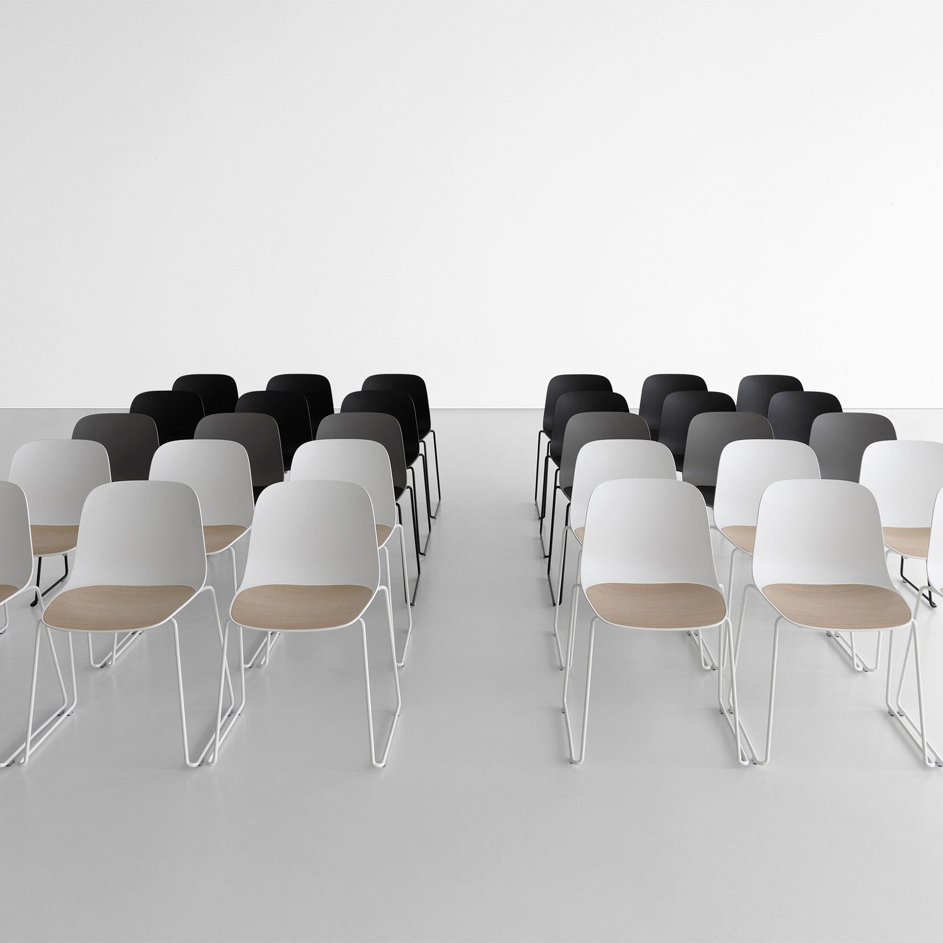 Der exklusive Seela S310 Stuhl mit Kufengestell in schwarz ist das Ergebnis der kreativen Vision des Designers Antti Kotilainen, der ihn für die renommierte Marke la palma entworfen hat. Mit seiner klaren Linie und seinen vielfältigen Funktionen ist er der perfekte Begleiter für Ihr Zuhause. Der Stuhl ist leicht, vielseitig einsetzbar und kann bei Nichtgebrauch einfach gestapelt werden. Seine markanten Schlittenbeine machen ihn jedoch unverkennbar.