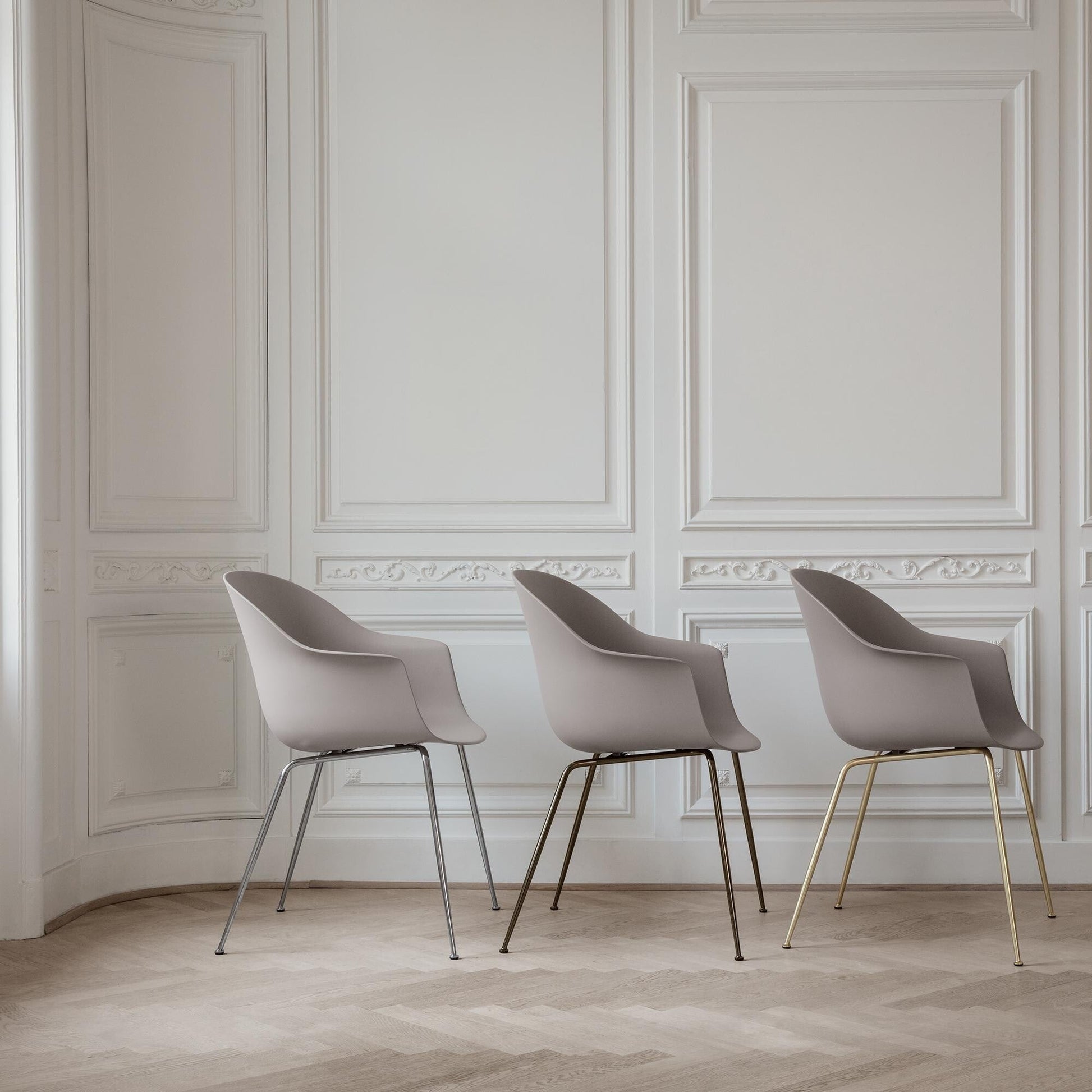 Der Bat Schalenstuhl Gestell konisch schwarz ist ein Meisterwerk der Möbelkunst, das von dem renommierten Designerduo GamFratesi für die Marke Gubi entworfen wurde. Die Bat-Serie, die 2019 auf der Messe in Mailand ihre Premiere feierte, hat sich schnell zu einem der beliebtesten Designs der Moderne entwickelt. Die einzigartige Sitzschale mit ihrer charakteristischen Form erinnert an die Flügel der nachtaktiven Fledermäuse und bietet einen einzigartigen Sitzkomfort.