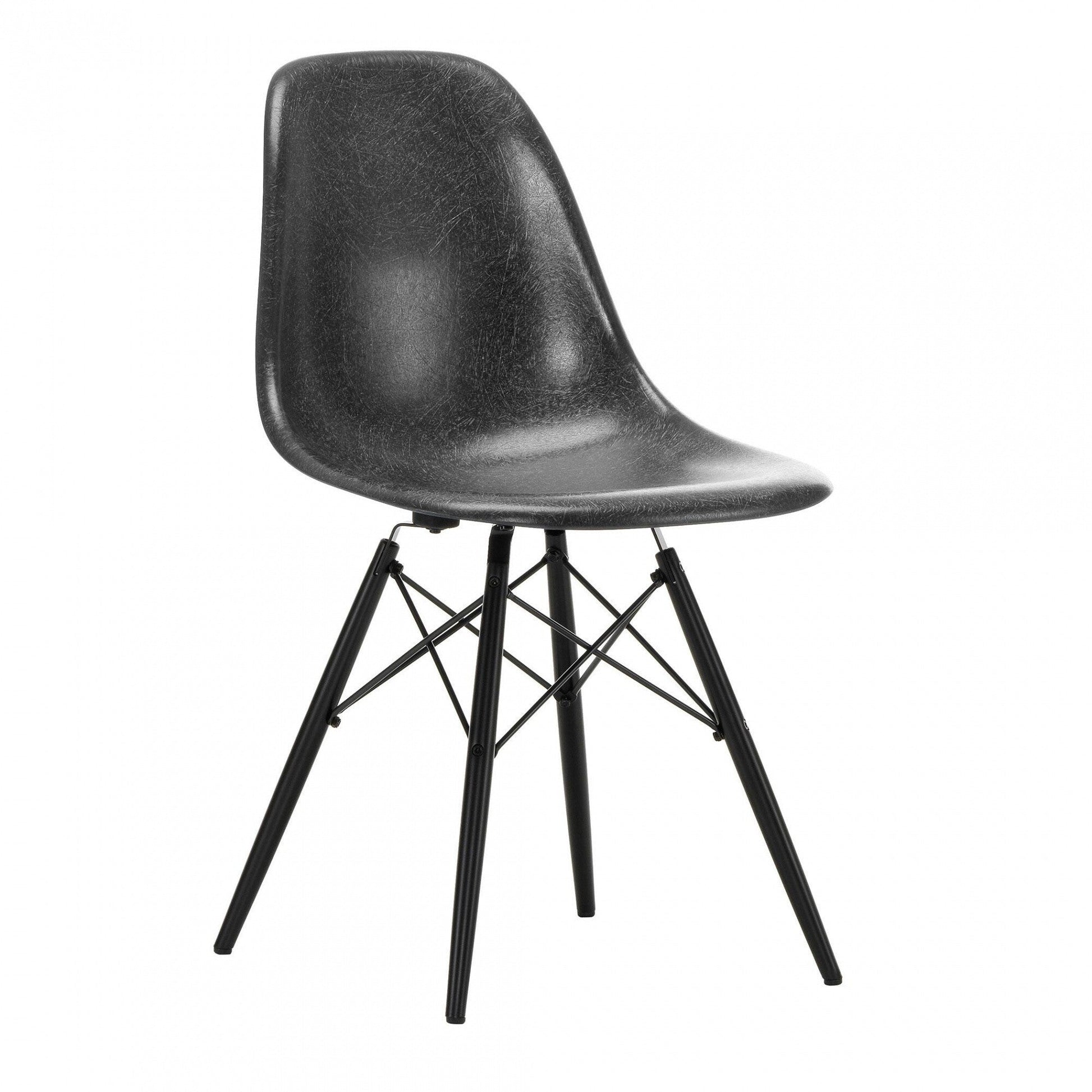 Ausführungen: Eames Fiberglass Side Chair DSW Ahorn schwarz / Elefantengrau/Sitzschale Fieberglas/Gestell Ahorn schwarz/Stahl schwarz/BxHxT 46,5x83x55cm