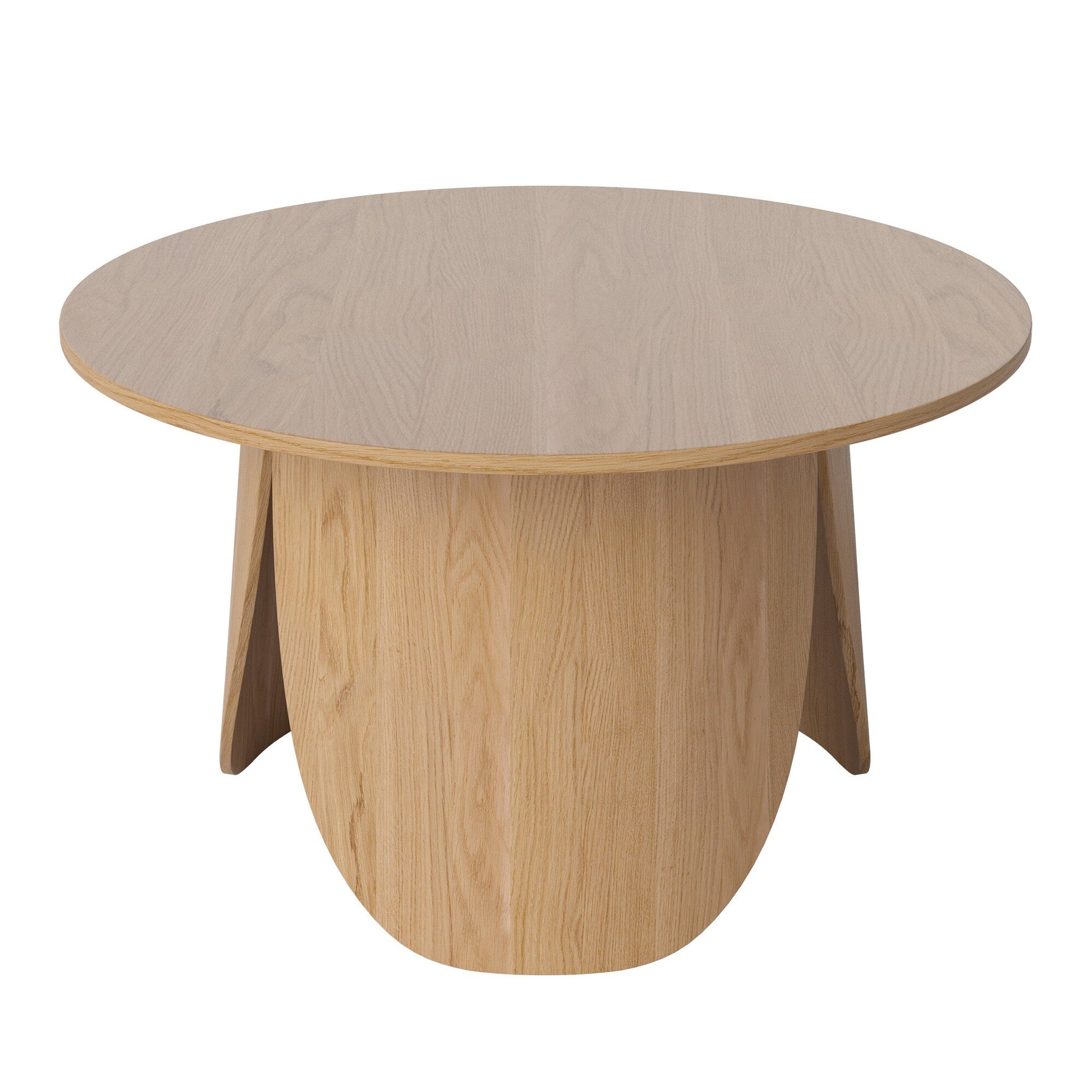 Der Couchtisch besteht aus robustem Eichenfurnier und Sperrholz, das aus FSC®-zertifizierter Herstellung stammt. Die langlebige Oberfläche bietet eine angenehme Haptik und verleiht dem Möbelstück eine Exklusivität, die in jedem stilvollen Wohnzimmer zu Hause ist. Mit einer Höhe von 45 cm und einem Durchmesser von 80 cm eignet sich der Peyote Couchtisch ideal als zentrale Ablage vor dem Sofa oder als stilvolles Einzelstück neben einem Sessel.