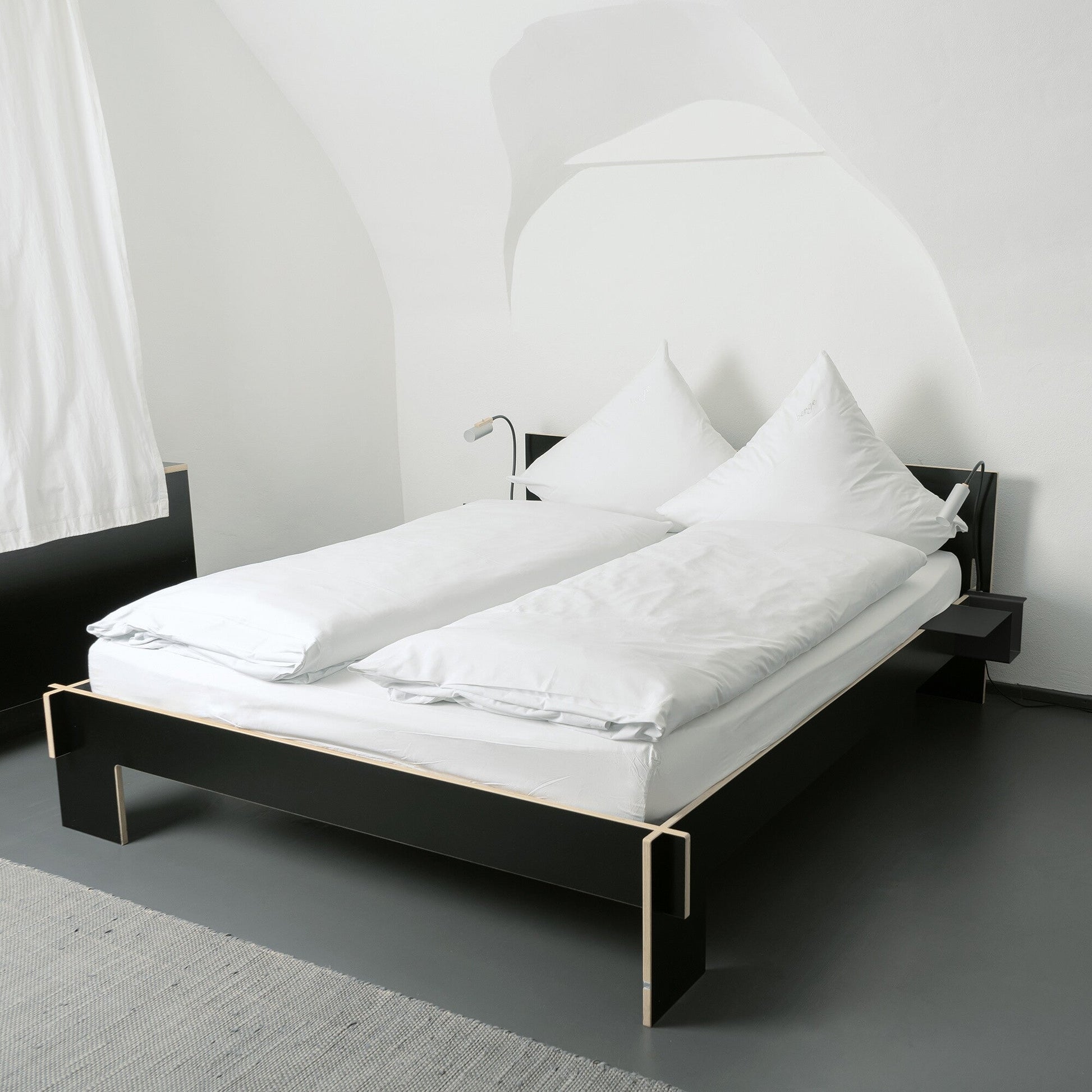 Siebenschläfer Doppelbett 140x200cm mit Kopfteil Schwarz