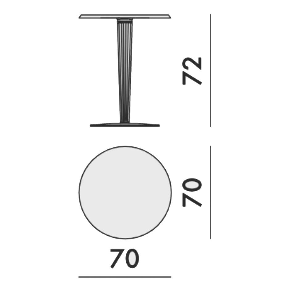 Der Top Top For Dr. Yes Gartentisch Ø70cm Gestell quadratisch ist ein Meisterwerk der modernen Möbelkunst, das von Philippe Starck und Eugeni Quitllet für die renommierte Marke Kartell entworfen wurde. Als Teil der Top-Top-Kollektion, die auch andere Tische für Innen- und Außenbereiche umfasst, zeichnet sich dieser Gartentisch durch eine einzigartige Kombination aus verschiedenen Materialien und Formen aus.