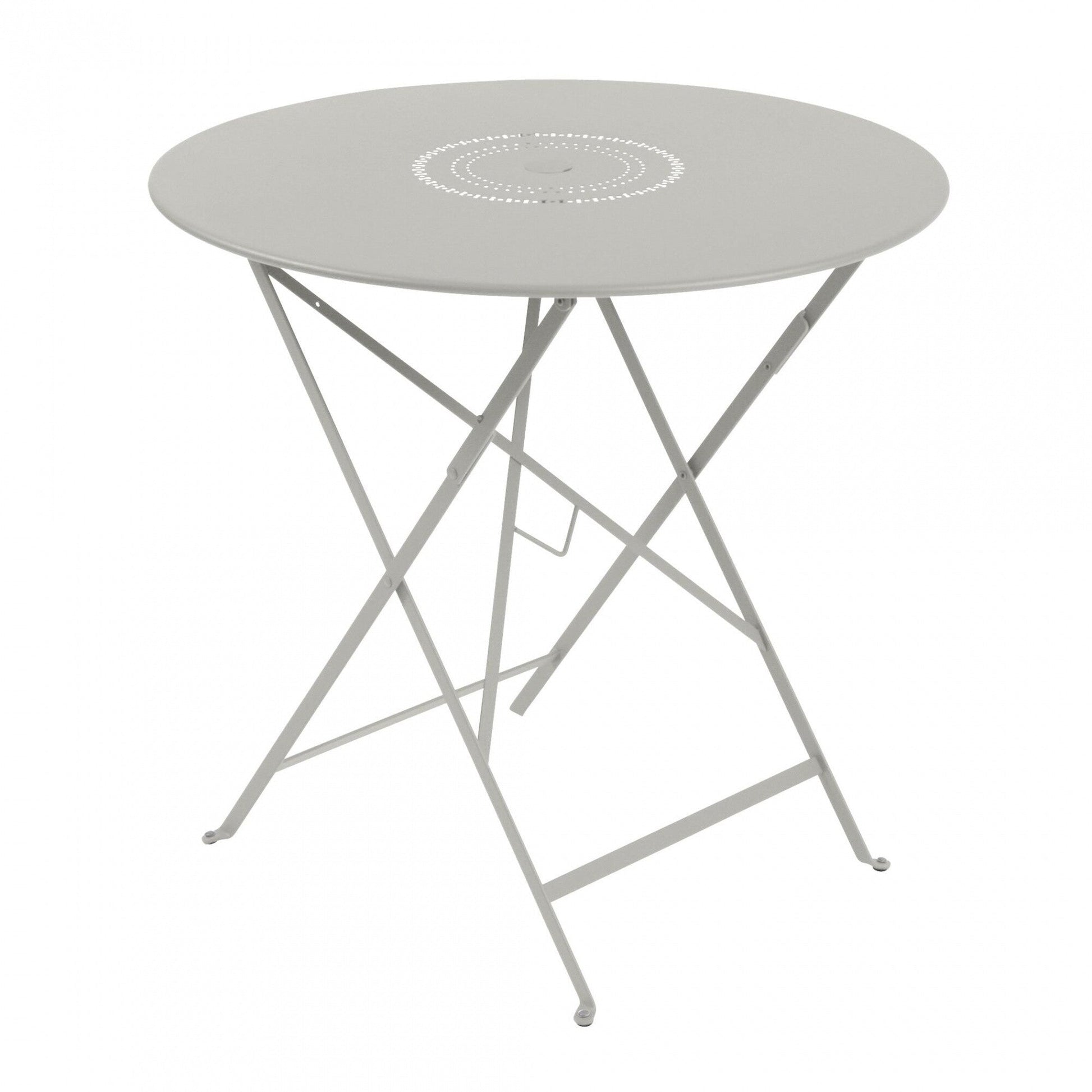 Der Floréal Klapptisch Ø77cm ist ein Meisterwerk der französischen Gartenmöbelmanufaktur Fermob. Als Teil der exklusiven Floréal-Kollektion zeichnet sich dieser Tisch durch seine elegante Form und höchste Qualität aus.