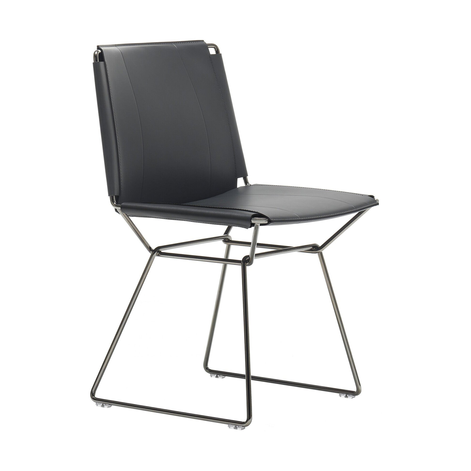Ausführungen: Neil Stuhl Leder / grau/BxHxT 50x80x58cm/Gestell Stahl schwarz verchromt