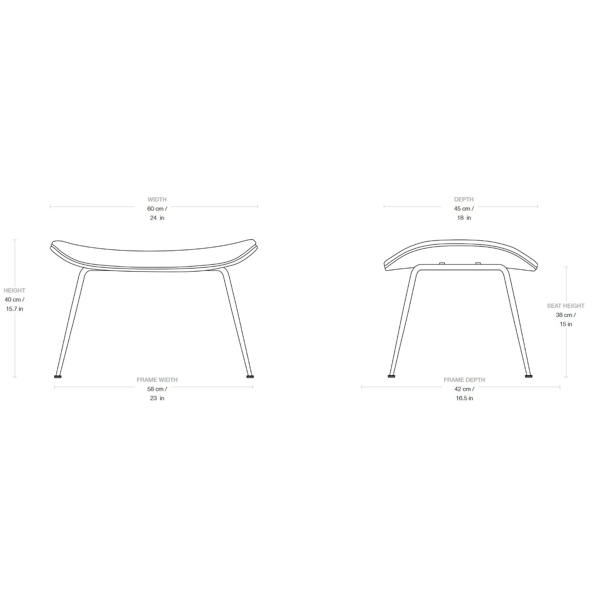 Der Beetle Ottoman ist in verschiedenen Farben und Materialien bezogen, um eine individuelle Note zu setzen. Der Bezug kann aus Polyester oder einem Mischgewebe bestehen, das aus verschiedenen Fasern wie Acryl, Schurwolle, Polyester und Baumwolle oder Viskose, Wolle, Leinen und Nylon besteht. Das Gestell steht ebenso in mehreren Farben zur Auswahl. Mit seinen beeindruckenden Abmessungen von 60cm Breite, 45cm Tiefe und 40cm Höhe, bietet der Beetle Ottoman eine große Sitzfläche und eine Höhe von 38cm.