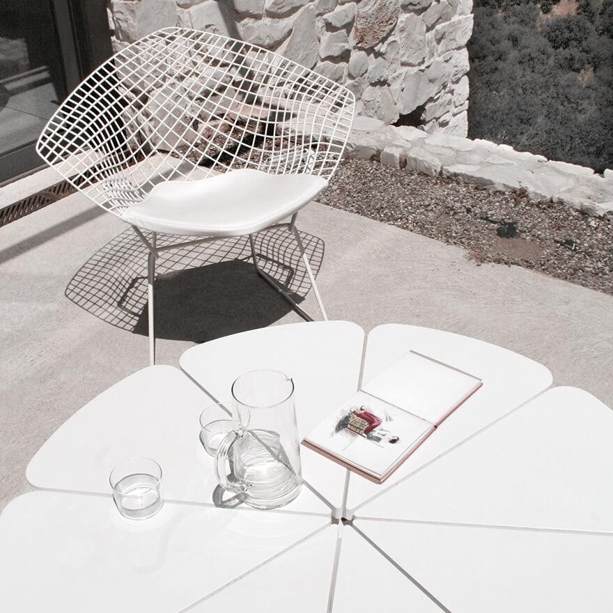 Der Bertoia Diamond Gartensessel - ein Meisterwerk des Designers Harry Bertoia, der für Knoll International geschaffen wurde. Als einer der einflussreichsten Gestalter seiner Zeit hat Bertoia einzigartige Visionen für Raum, Material und Stil entworfen, die auch in diesem Gartenstuhl wiederzufinden sind. Die einzigartige Rautenform, die die Facetten eines Diamanten symbolisiert, ist ein stetig wiederkehrendes Element, das sich in der Lehne, dem Sitz und dem Rahmen wiederfindet.