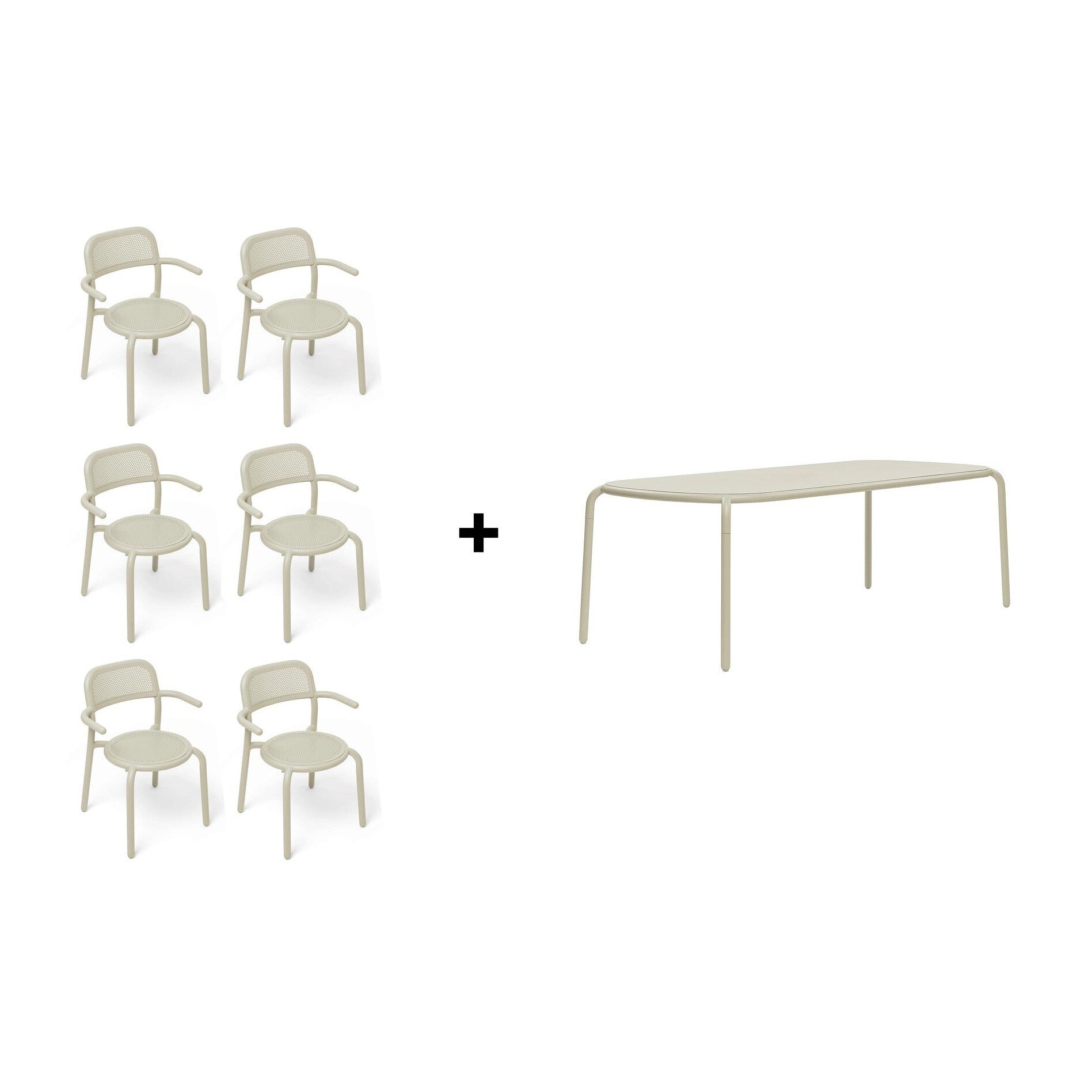 Ausführungen: Toní Gartentisch + Gartenarmlehnstuhl / wüste/pulverbeschichtet/1x Gartentisch/6x Gartenarmlehnstuhl