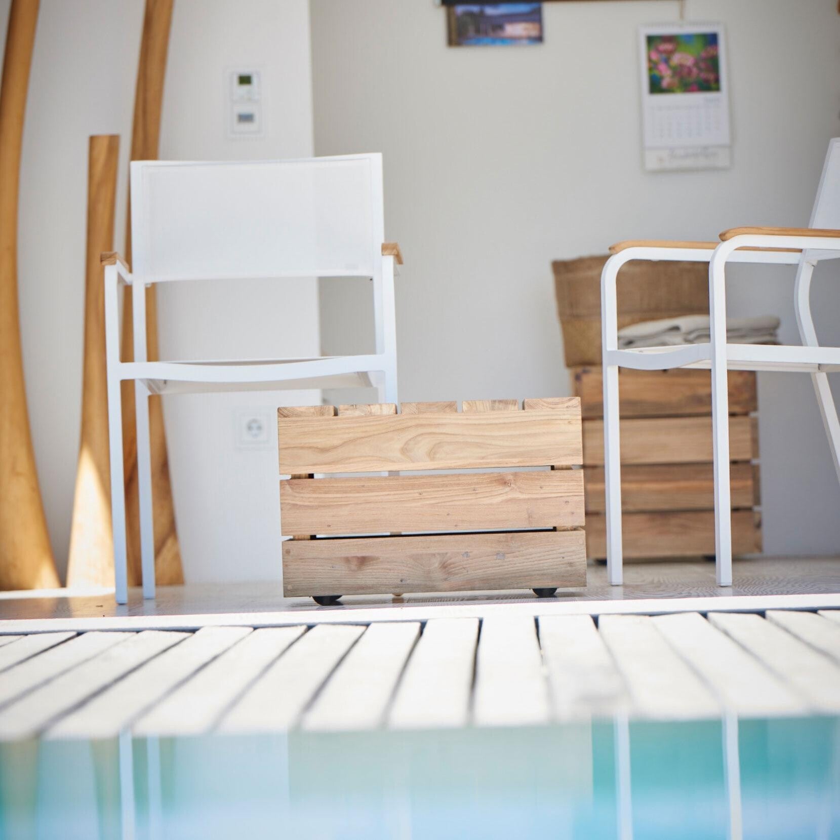 Der Move Beistelltisch besteht aus mehreren Massivholzplatten, die ihn zunächst wie eine gewöhnliche, roh gezimmerte Holzkiste erscheinen lassen. Doch im Detail offenbart sich das edle Teakholz, das mit dem "Trees 4 Trees"-Zertifikat ausgezeichnet ist. Die individuellen Unregelmäßigkeiten an seiner Oberfläche machen jedes Exemplar zu einem einzigartigen Stück, während die plastisch hervortretenden Holzfasern einen faszinierenden haptischen Effekt erzeugen.