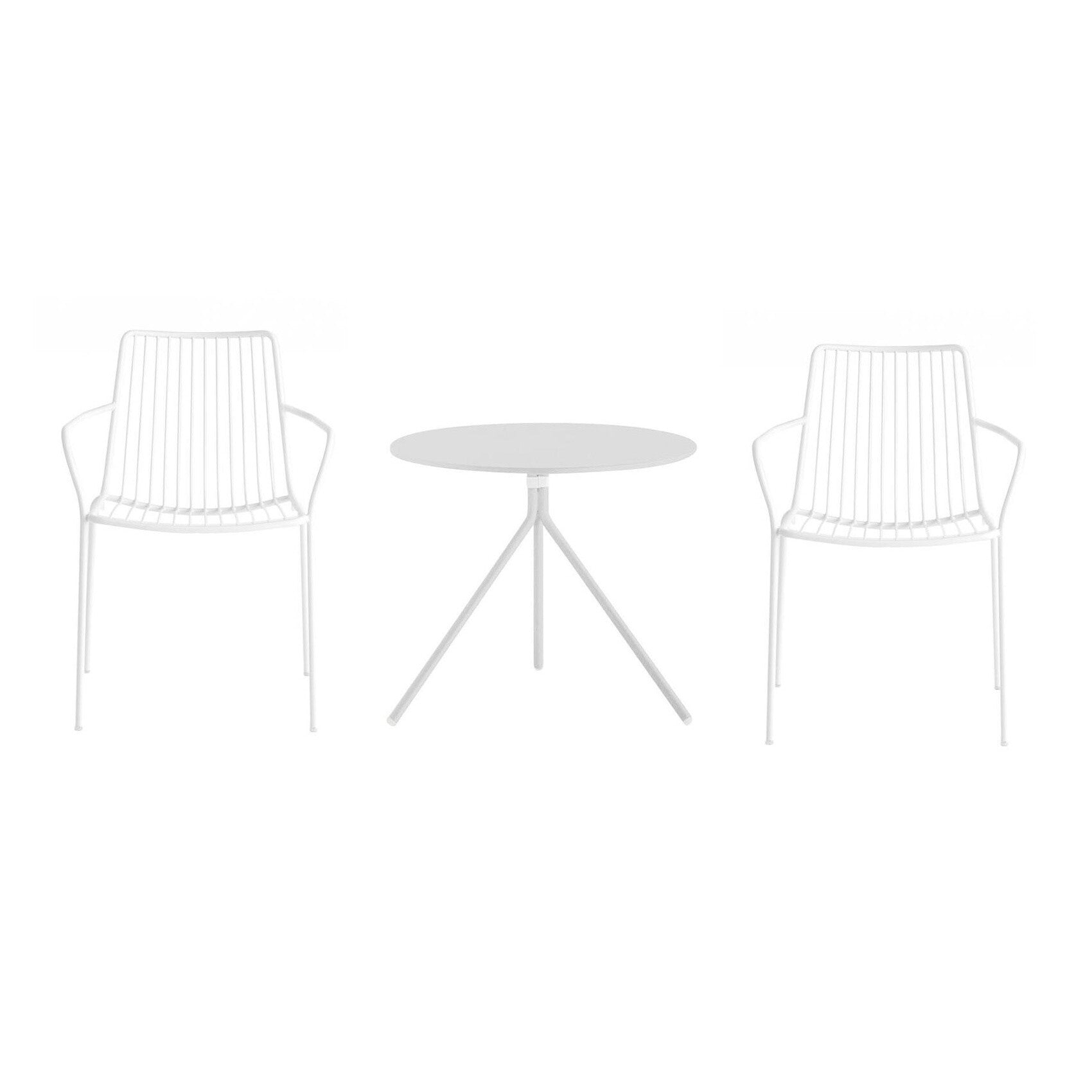Ausführungen: Nolita Gartenset / weiß/lackiert/1x Tisch: H 49cm / Ø 65,5cm/ 2.1kg/2x Stuhl: BxHxT 59,5x84,5x58cm/ 5.9kg
