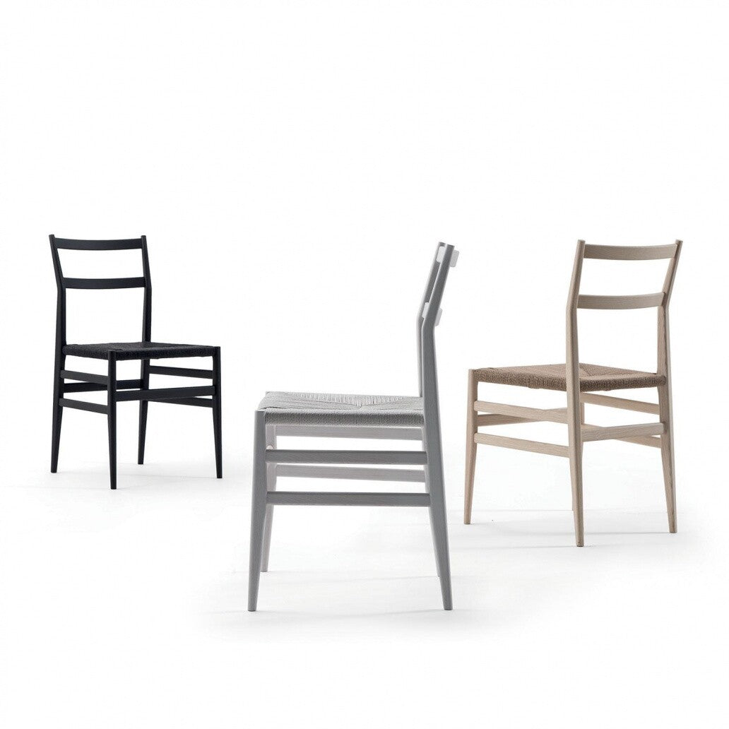 Die Sitzfläche des 646 Leggera Stuhls ist mit geflochtenem Seil ausgeführt, das sich durch eine erstklassige Haptik auszeichnet. Dieser Stuhl ist nicht nur ein Design-Objekt, sondern auch ein bequemer Sitzplatz. Er ist in verschiedenen Farben erhältlich, sodass er sich in jedem Einrichtungsstil einfügt. Die Sitzhöhe beträgt 46 cm, die Gesamthöhe 85 cm, die Breite 45 cm und die Tiefe 47 cm. Der 646 Leggera Stuhl ist ideal für Wohn- und Esszimmer, aber auch in eleganten Lokalen und Restaurants wird er gerne eingesetzt.
