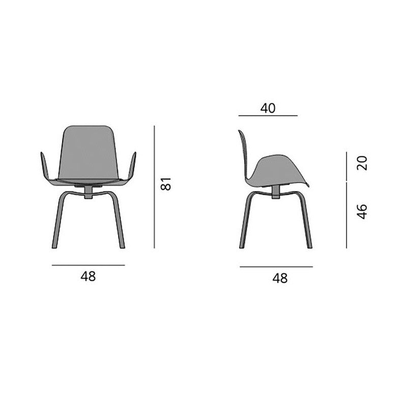 Der Pec Armlehnstuhl drehbar ist 61 cm hoch und 48 cm tief. Die Sitzschale mit Armlehnen ist 20 cm hoch, die Armlehnen liegen auf 66 cm Höhe und die Sitzhöhe auf 46 cm. Er bietet im Home-Office oder im Büro den besten Sitzkomfort und passt sich auch an den Esstisch oder in moderne Restaurants an. Sein schlichtes Design macht ihn zum vielseitig kombinierbaren Möbelstück.