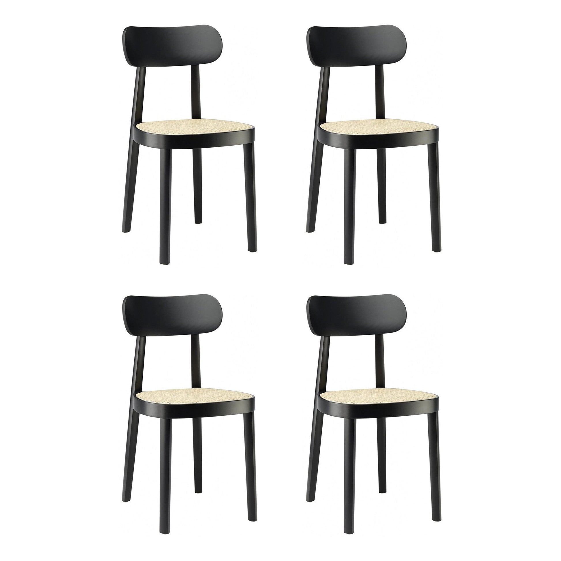 118 Stuhl mit Rohrgeflecht 4er Set Schwarz