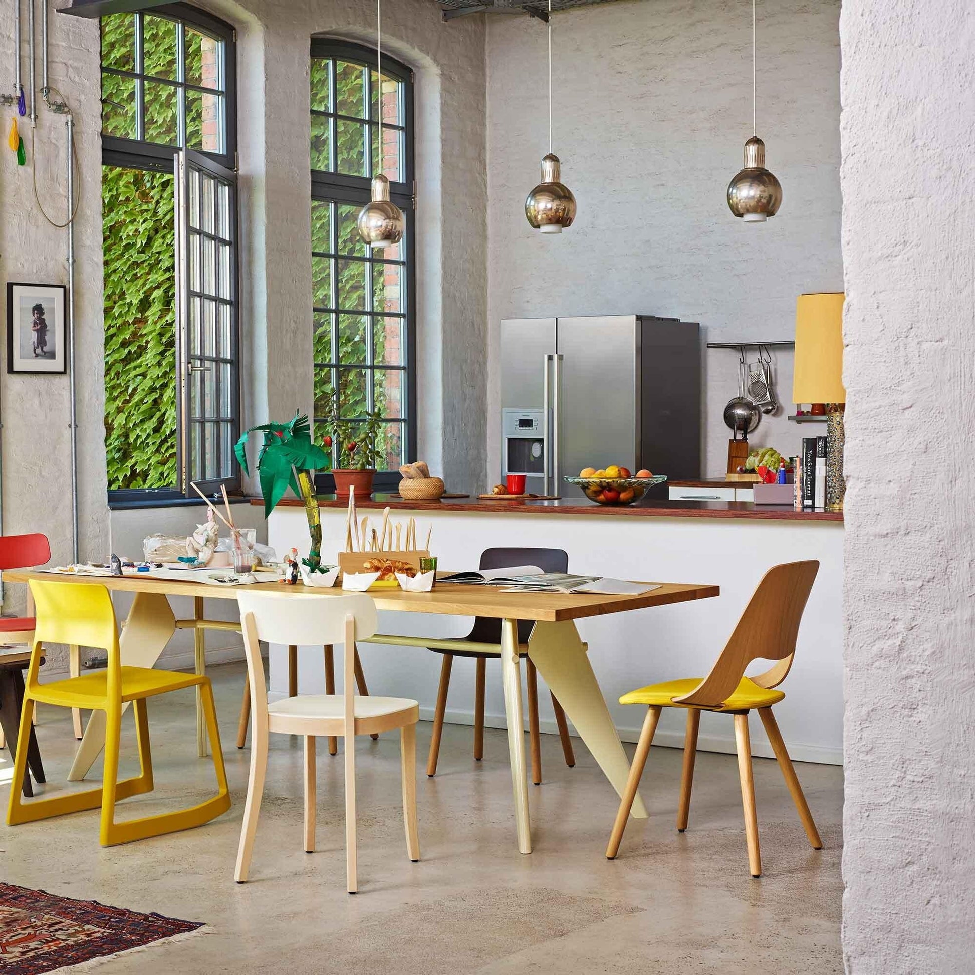 Der EM Table Prouvé Tisch 220x90cm ist ein Meisterwerk der zeitlosen Eleganz, das von dem renommierten Designer Jean Prouvé für den Hersteller Vitra entworfen wurde. Er wurde in den frühen 1950er Jahren für das Wohnkonzept "Maison Tropique" konzipiert und zeugt von einer puristischen Ästhetik und einem strengen architektonischen Design, das durch die mit einer Traverse verbundenen Tischbeine gekennzeichnet ist.