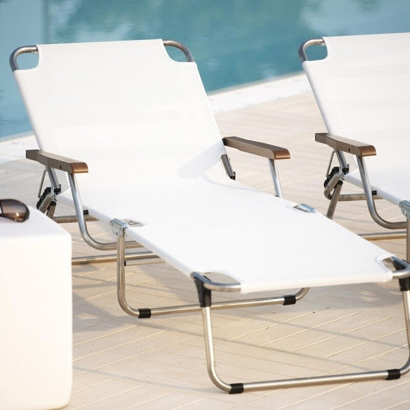 Entdecken Sie die Fiam Amigo Dreibeinliege mit Armlehnen und genießen Sie die Sonne auf Ihrer Terrasse, im Garten oder am Meer. Eine echte Oase der Entspannung, die Sie schätzen werden.