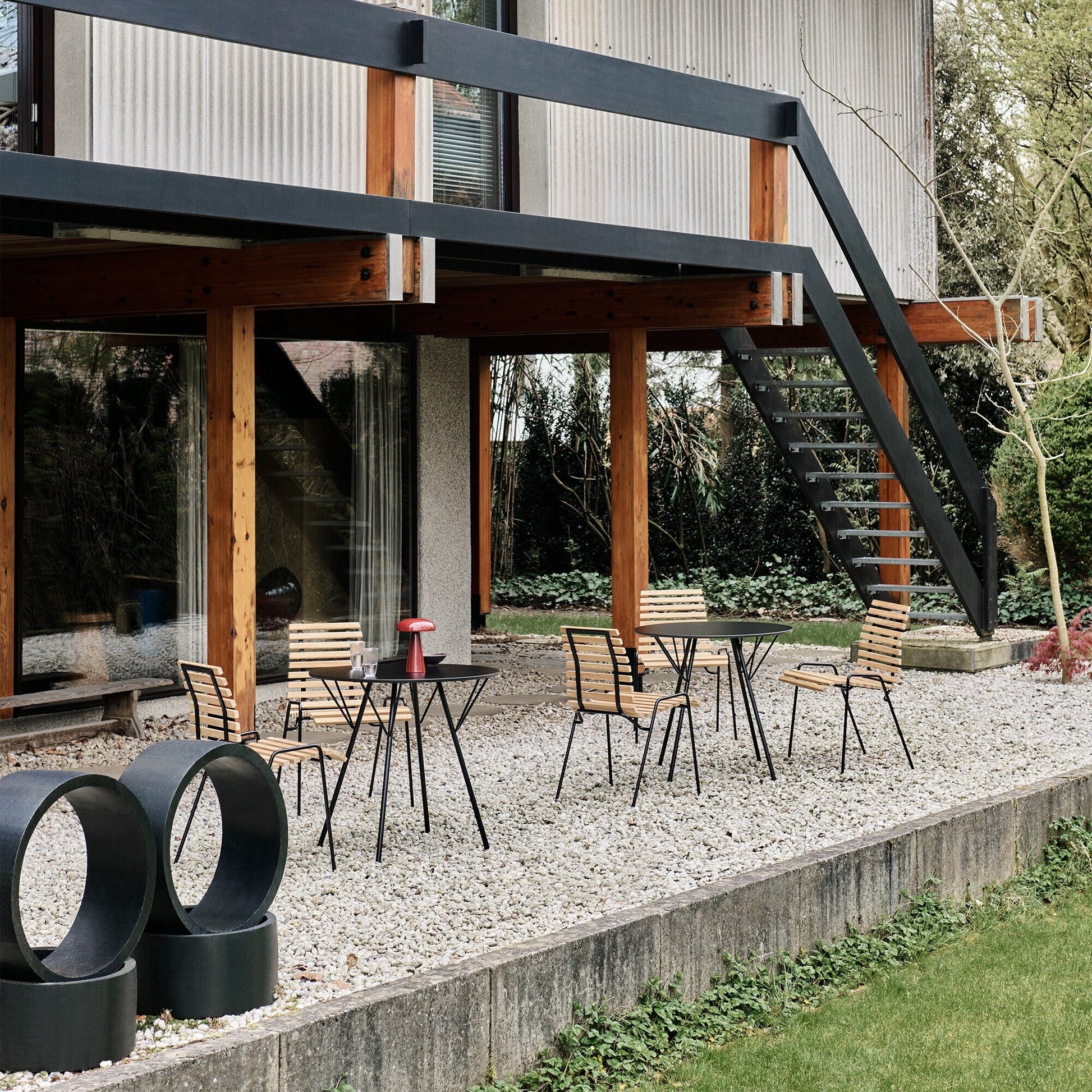 Der Royal Festival Hall RD4 Terrasse Stuhl ist ein Meisterwerk des englischen Designers Robin Day, das 1951 für die Marke &Tradition entstand. In puristischer Formgebung entwarf Day einen Gartenstuhl, der mit seinem einzigartigen Lamellendesign ein echtes Highlight in jedem Außenbereich wird.