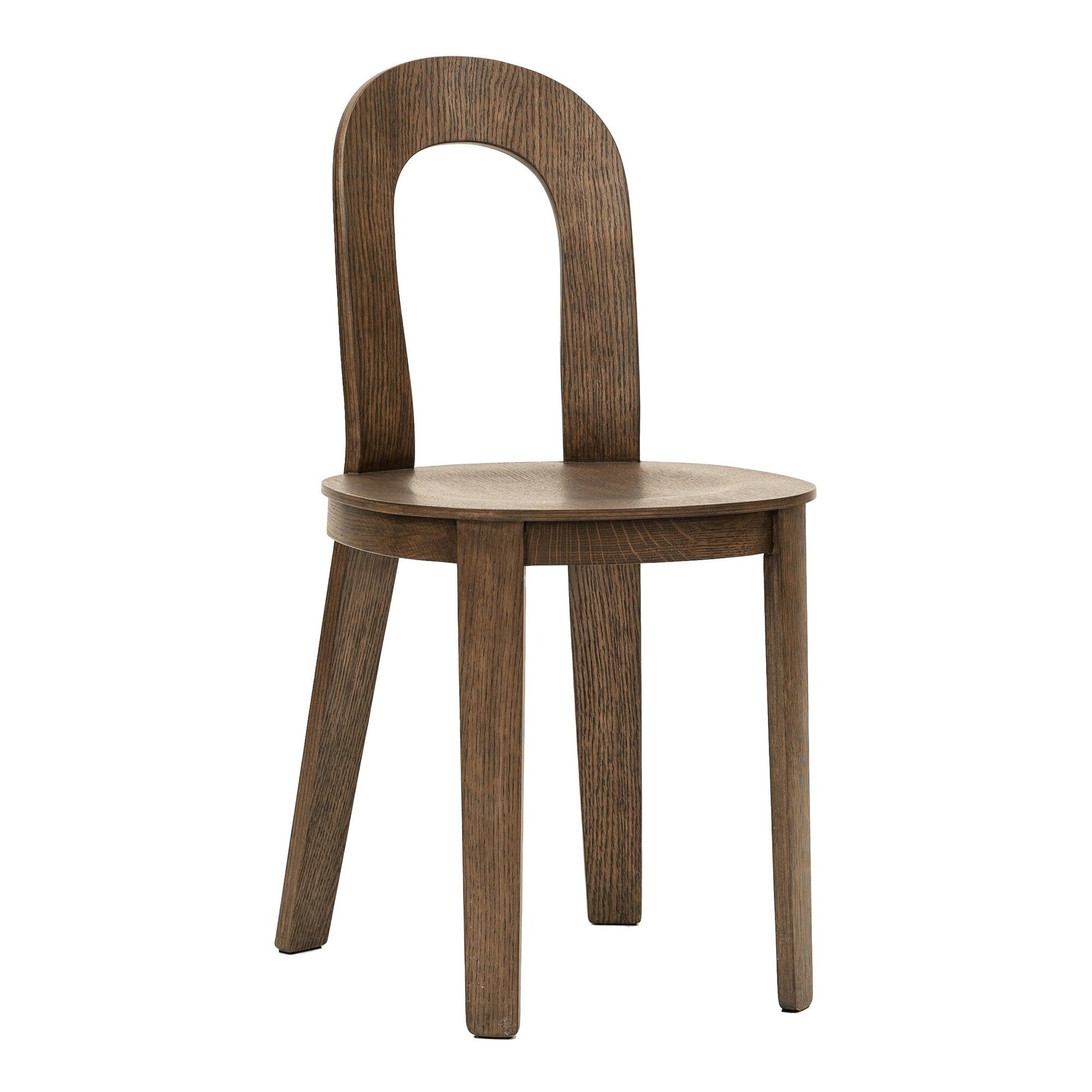 Material: Rückenlehne: Eichenfurnier, Verstärkung des unteren Sitzrahmens: Gummibaum, Beine und Sitz: Eiche (Herkunft: Europa)