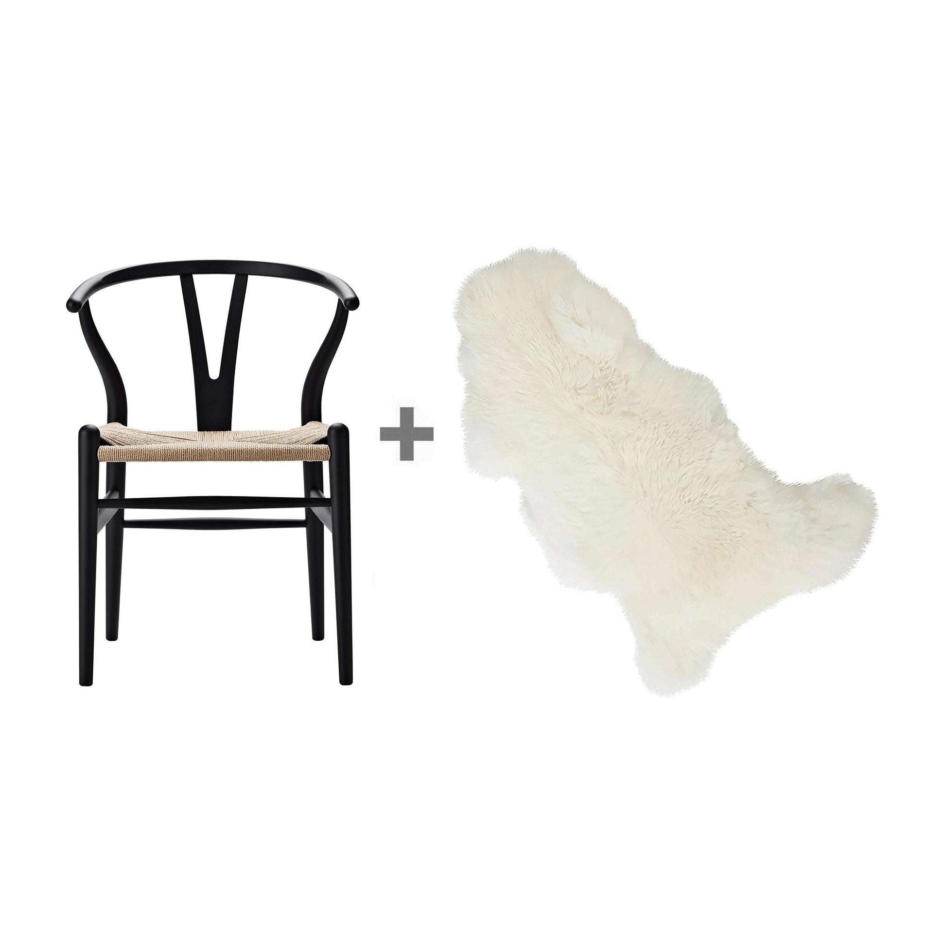 Aktionsset CH24 Wishbone Chair mit Fell Schwarz